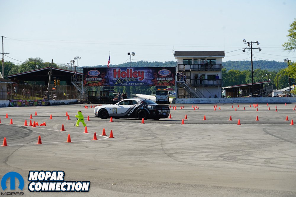 As you made your way through rows of cars, you come up on the racetrack. The track was able to hold an autocross challenge as well as a drag racing all weekend. The drag strip is separate from the autocross area. If you were there to drag race, it went on all weekend nonstop. Anyone with a Mopar could sign up and take a run down the track at certain times.