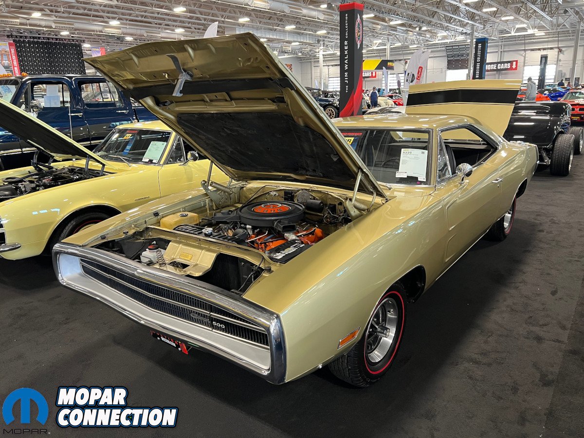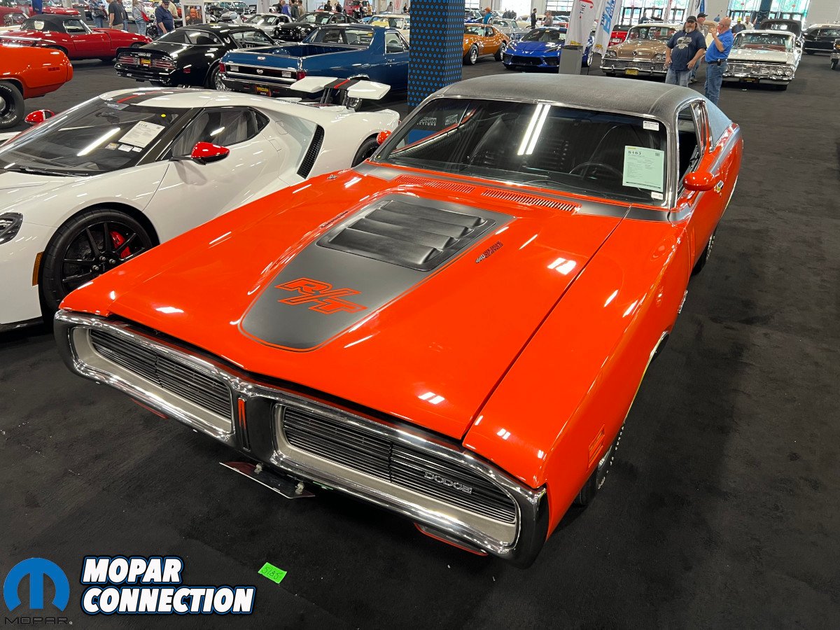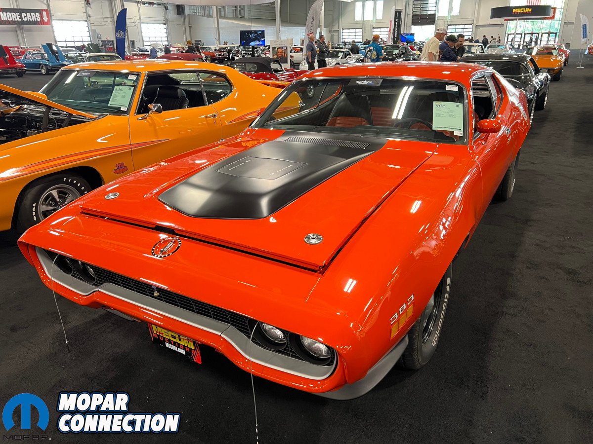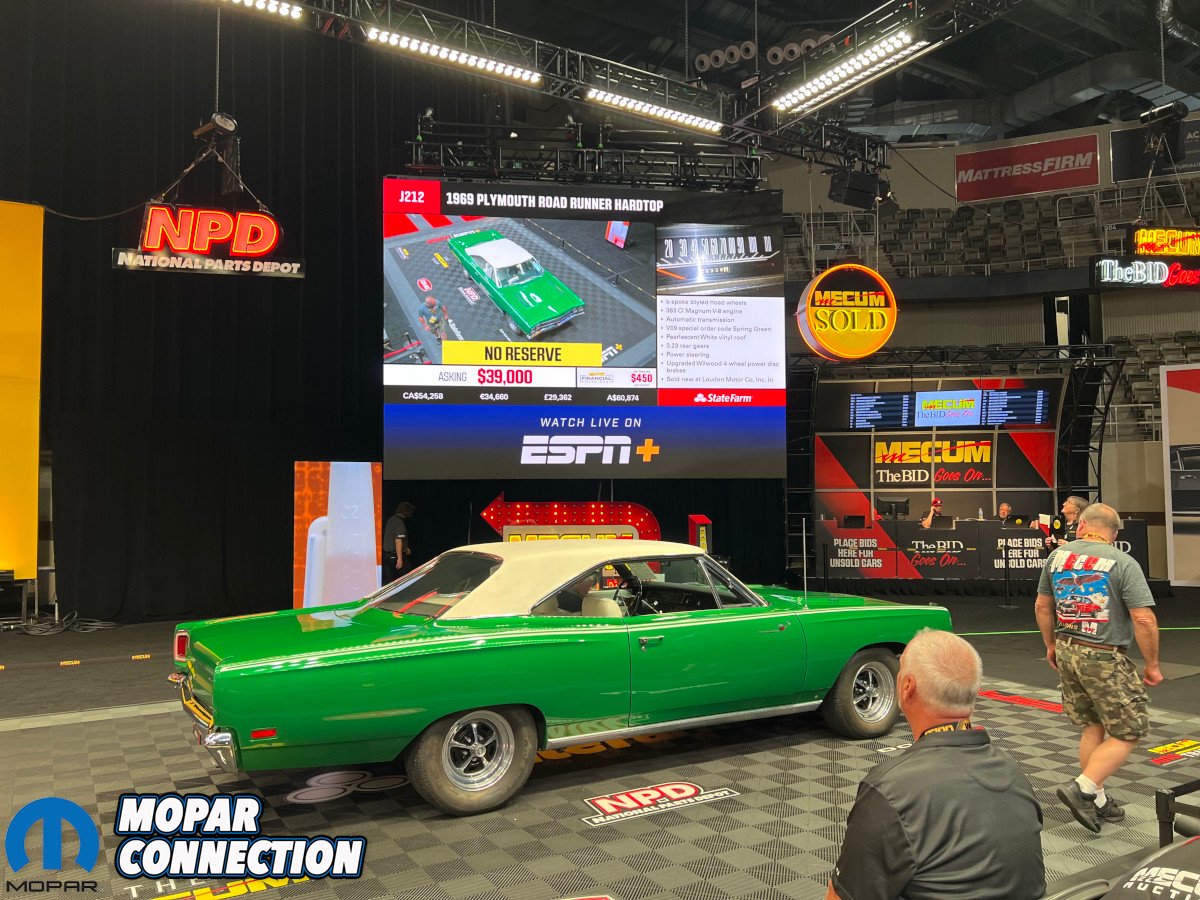 Unsurprisingly, Dodge and Plymouth were well-represented in the headline building, most of which were part of the Apex Collection. Two rarities flanked the Mecum Auctions monument in the center with a 1969 Hemi Plymouth Road Runner on the left and a 1969 440 Six Pack Dodge Super Bee on the right.