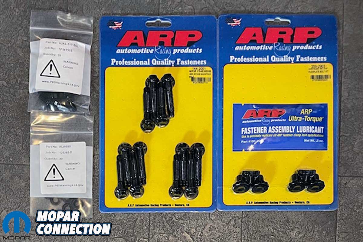 Above Left: Comp Cams provided a camshaft, valve springs, and a timing chain. We also received a shop banner. Above Right: For the engine components’ fasteners, we selected APR bolts, nuts, and lubricants, which are the best in the market.