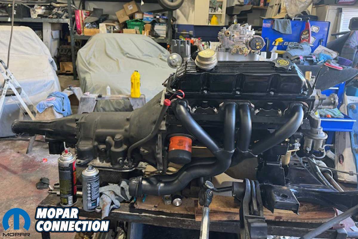 We went with a stock Mopar electronic ignition (PT# MOPP4120505) with a recurved distributor. The carburetor was topped with a Mopar air cleaner (PT# MOPP4529026).