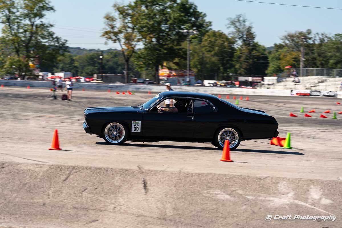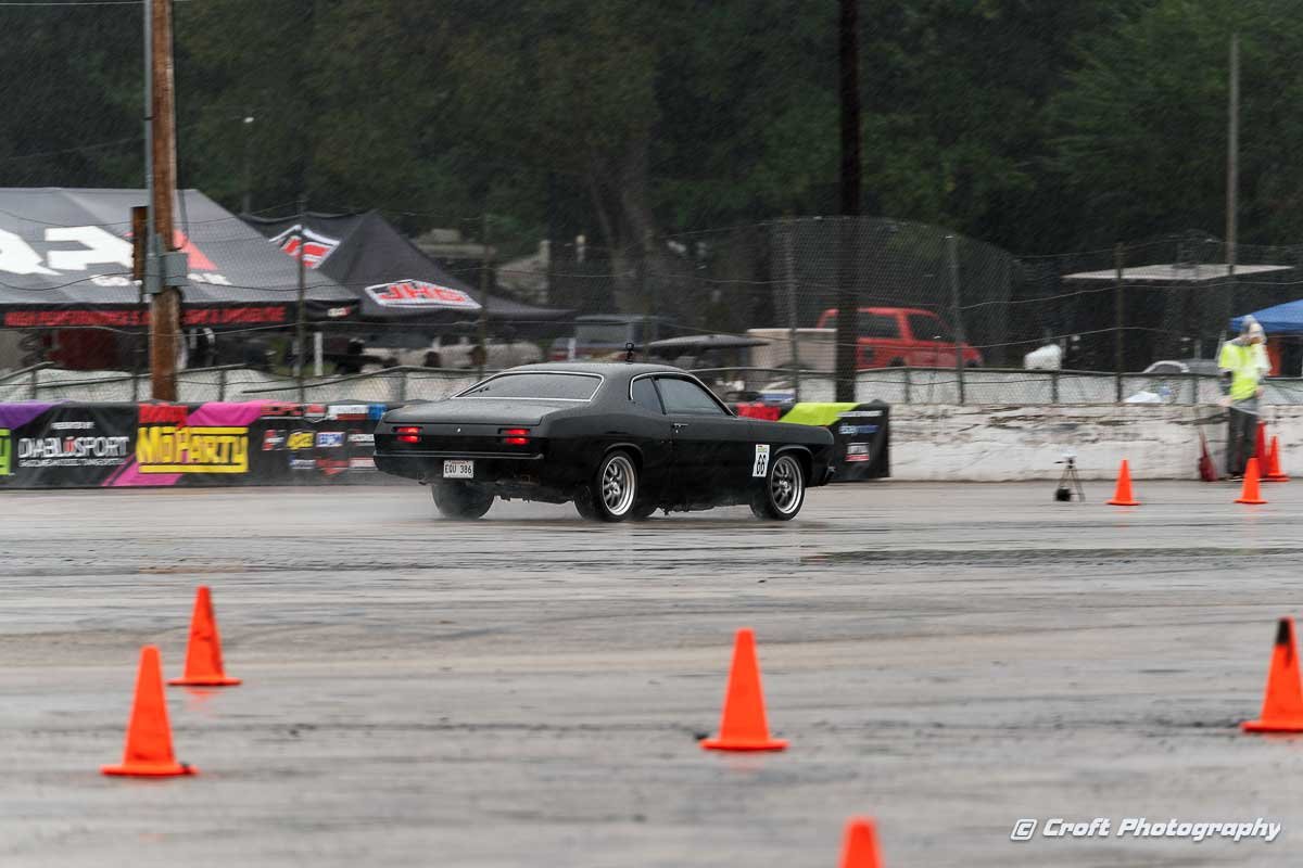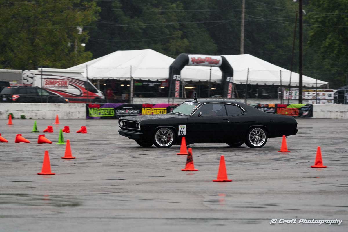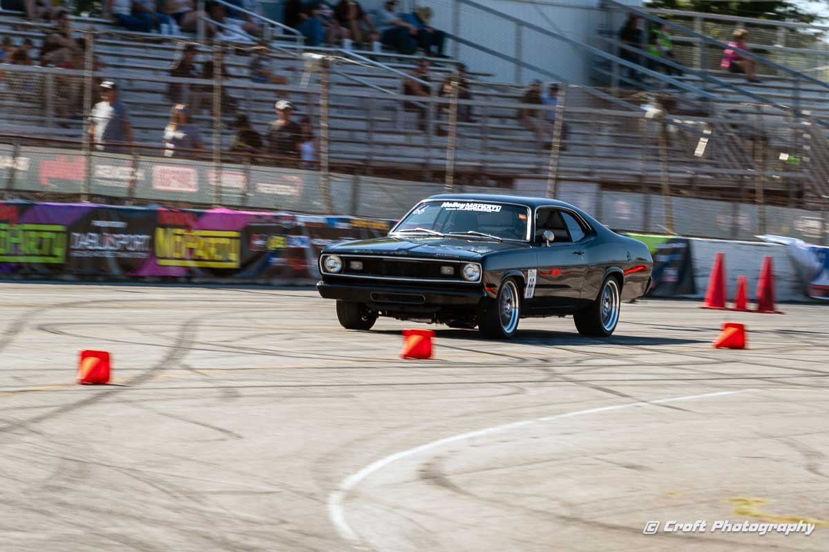 Just weeks later, Talbot competed at a Cruisin’ the Coast event. After making a dozen runs in two hours, Talbot gained some experience setting up and driving the Duster with the new front suspension. He also figured out the corner braking of the new six-piston Wilwood brakes.