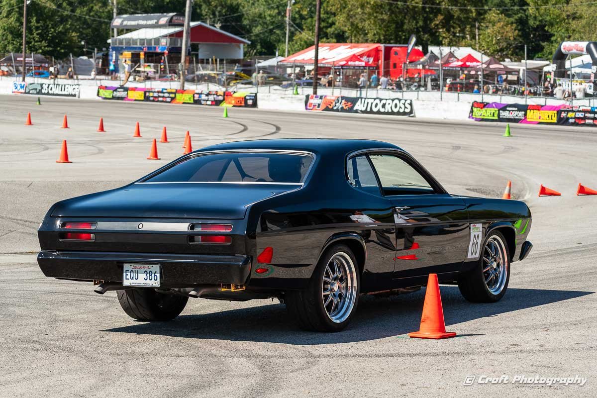 Above: The HDK Suspension did not have the front-end rise necessary for the ultimate acceleration, but the suspension is not designed for drag racing. The suspension in Talbot’s Duster is set up for an autocross event. (Photo – Owner’s Collection)