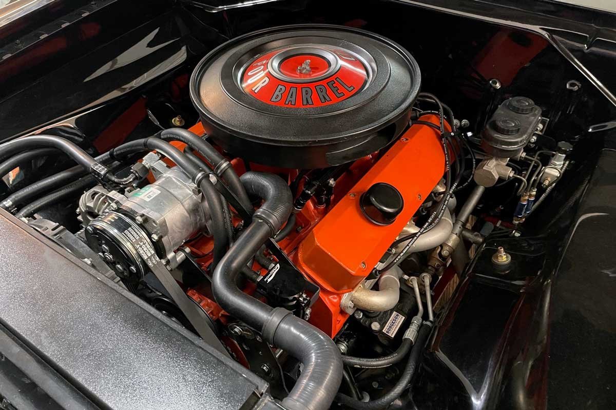 Talbot also switched from carburetion to port electronic fuel injection (EFI). A Mopar M1 intake manifold was modified with injector bungs, and Talbot installed a universal square-bore throttle body. The factory distributor gave way to eight LS coils. A custom engine harness was made with a 48-pin connector hidden behind the intake manifold to maintain a clean appearance.
