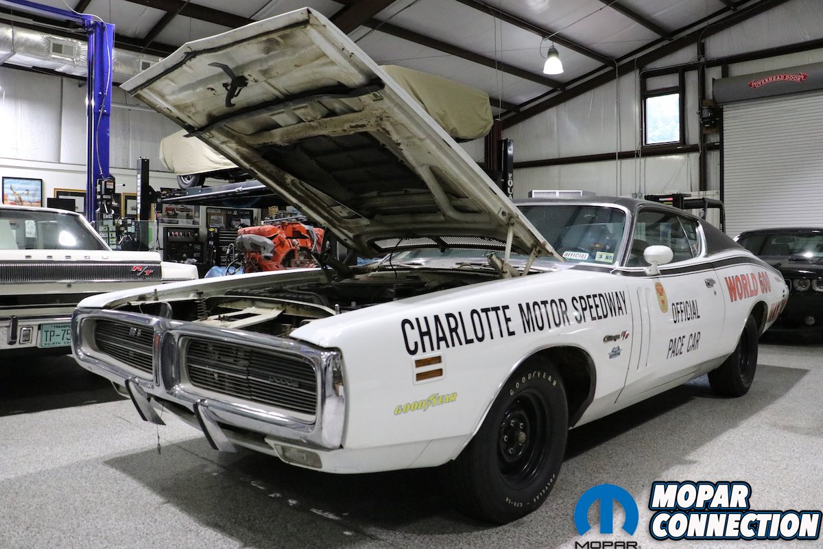 Leaving the “Man Cave” Mike lead us into the shop, an immaculately-clean, environmentally-controlled room more akin to a hospital’s surgery center than an automotive garage. Several cars in varying degrees of completion filled the epoxied floor. A 1971 Dodge Charger R/T that was once the pace car at Charlotte Motor Speedway took center stage.