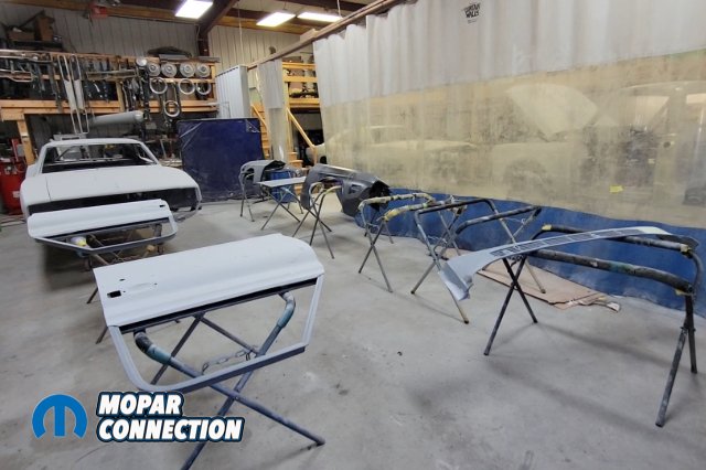 On the Mopar side of things, there were two Dodge Chargers (a 1968 and a 1969) nearing the final stages of bodywork before paint. The 1969 Charger was a crashed R/T that had a lot of metal replaced with parts from Auto Metal Direct.