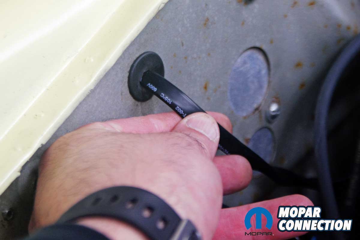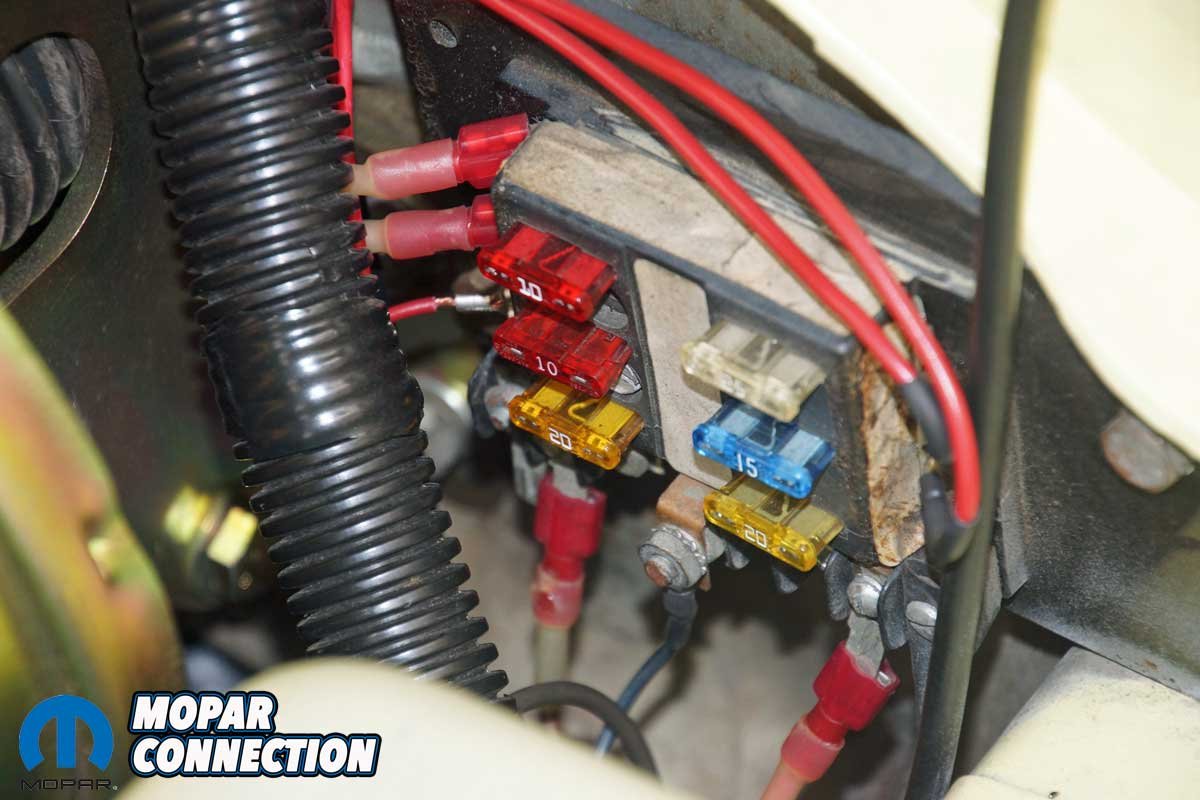 Two harnesses must be connected to the gauge. Connector A has ten pins, and connector B has eight pins. Because we only planned to use the gauge and not have the data reported to CAN, RS-232, or an analog output, we only needed to provide a switched 12-volt with a 5-amp fuse (pin 1) and a ground (pin 2) for connector A. The switched 12-volt source was found at our aftermarket fuse box. And the ground was established at a ground under the dash. Connector B attaches between the gauge and the UEGO sensor. We snapped the UEGO sensor harness to the connector B harness and routed the harness to the interior of the Dart.