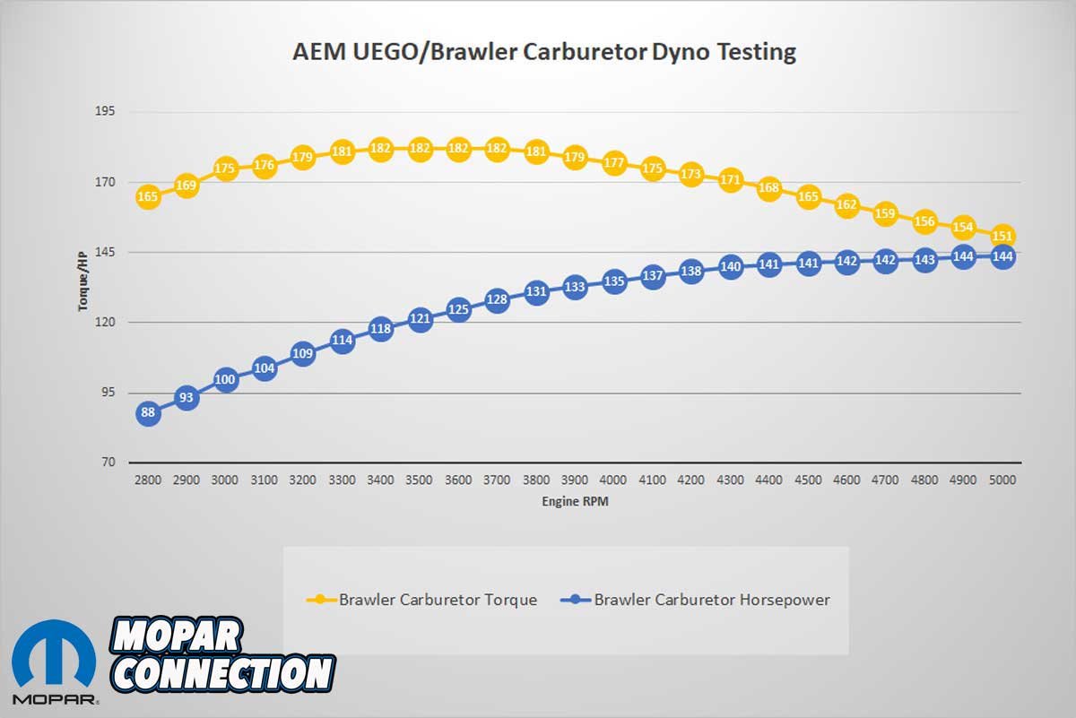 Left: Except for the carburetor and intake manifold, the 273 is factory stock. It performed admirably from 2800-5000 rpm. Center: We adjusted the fuel curve to an acceptable best lean power tune over the same rpm range. Right: Over the last two months, our city driving with the well-adjusted Brawler has provided several fill-ups that averaged over 18 mpg.