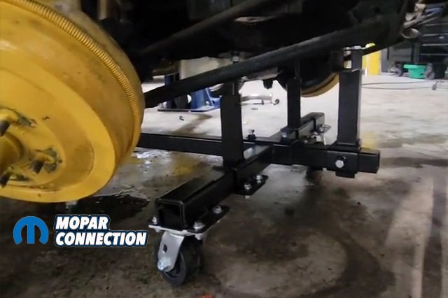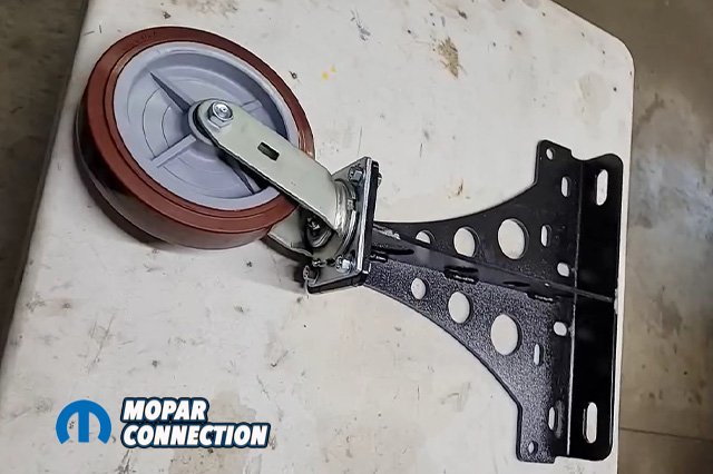 With heavy gauge steel, we noticed these are very strong and will support the cars weight easily without bending or binding. The large 8” swivel caster wheels are surrounded with rubber to prevent any damage to your garage floor. Two 8” fixed rear caster body wheels also comes in the kit however we did not need these for our project. The rear brackets bolt onto the leaf spring mounting locations.