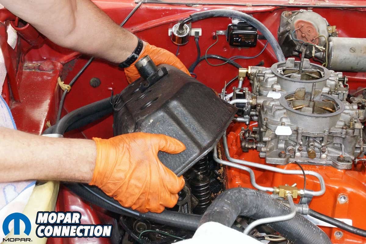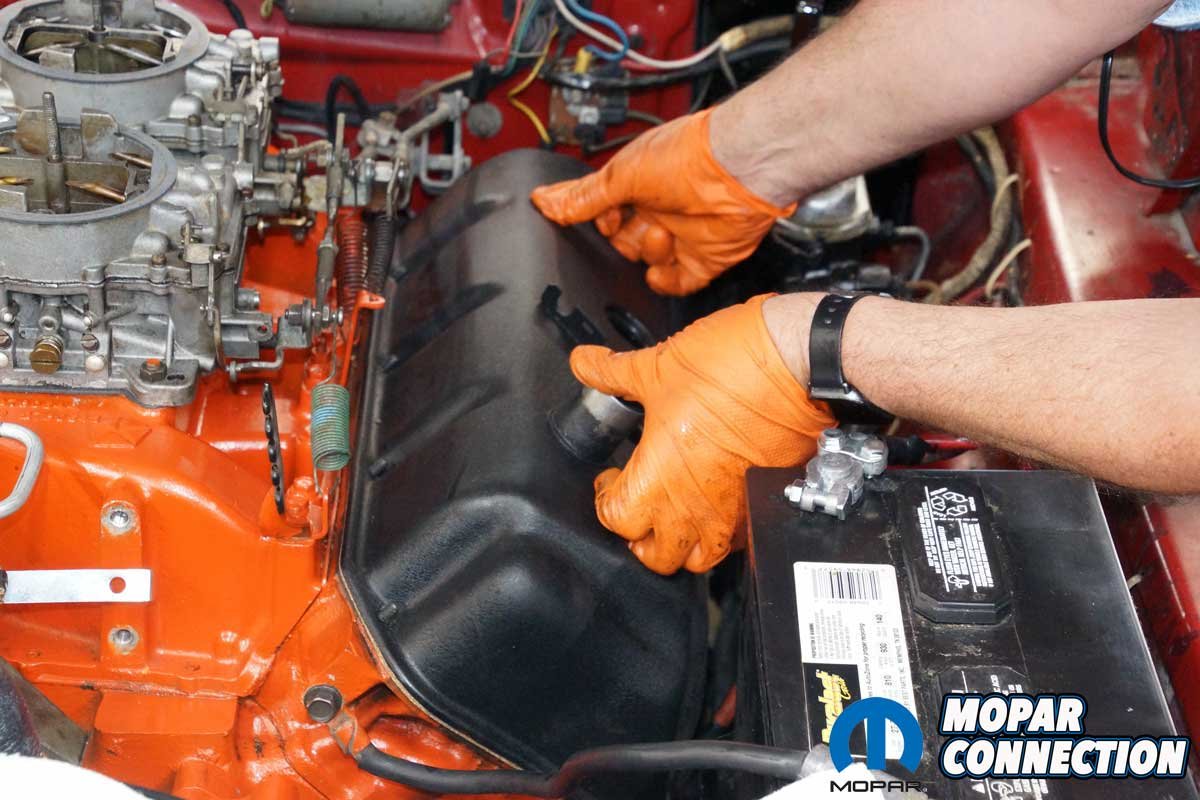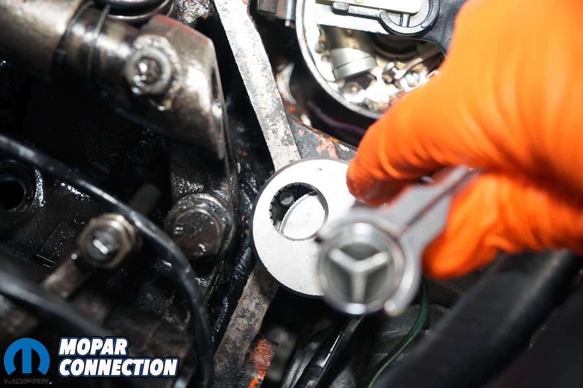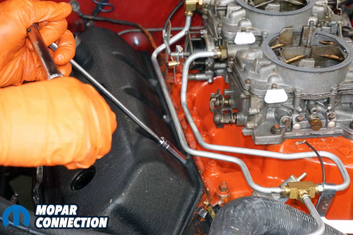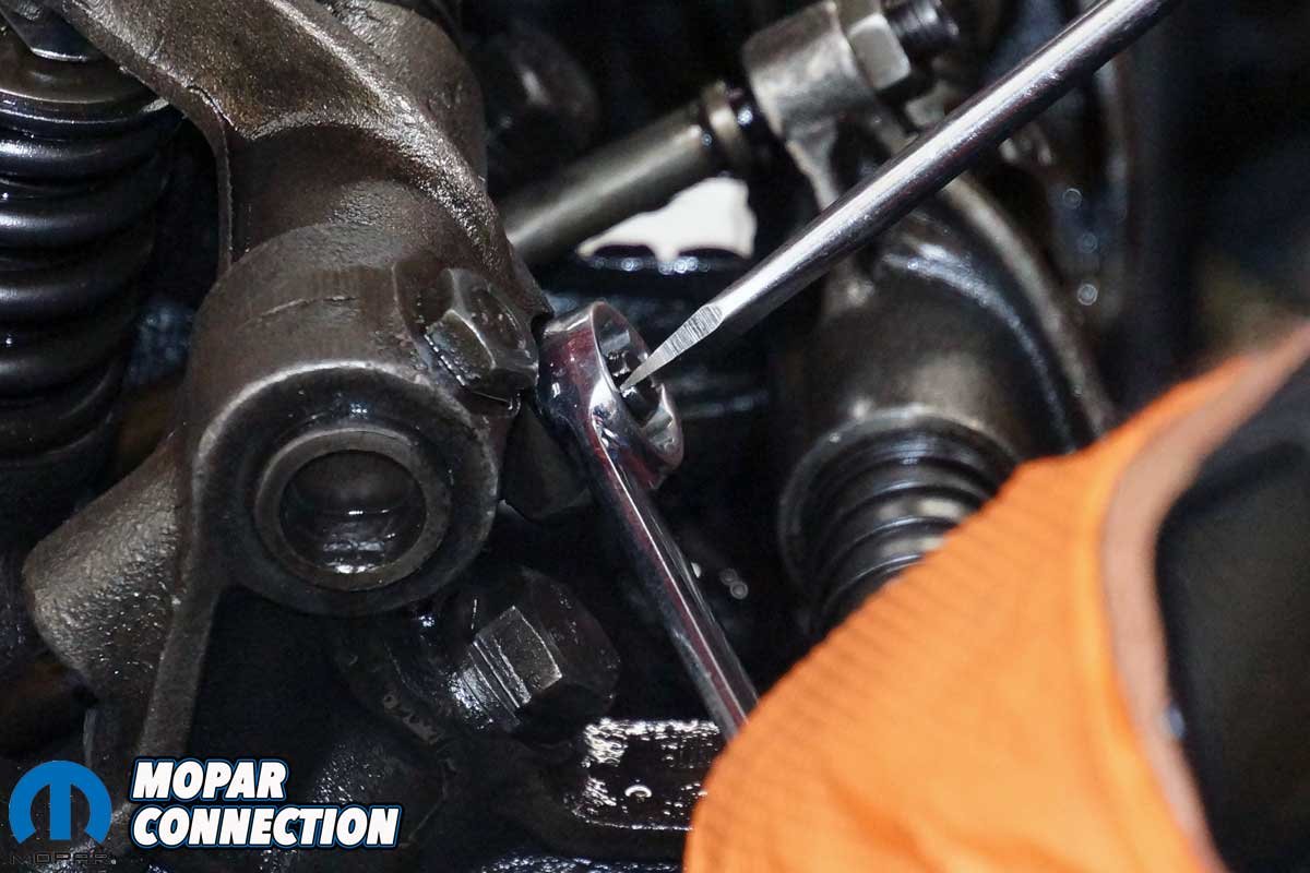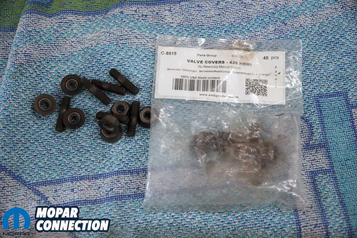 Our last step in assessing the Hemi’s health was to check the valve lash. We also planned to install new OEM valve cover fasteners (studs and nuts) to replace the multiple studs, screws, nuts, and other fasteners that had been installed over the years.