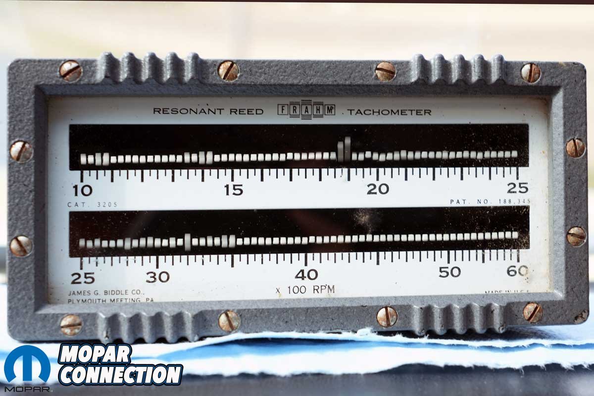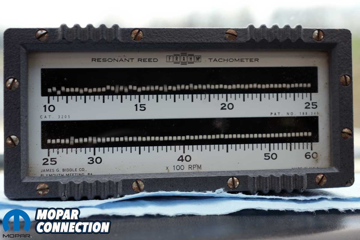 Above Left: To isolate the cause of the vibration, we used a Reed tachometer. While there are Electronic Vibration Analyzers (EVAs) and other vibration diagnostic tools, the Reed tach was a simple tool that operated without the need for power. Above Right: At 45 mph, our vibration showed up on the Reed tach at about 1850-1900 rpm. We ran the Dart above and below 45 mph, and the Reed tach did not pick up any substantial vibration, but at 45 mph, it consistently measured the vibration.