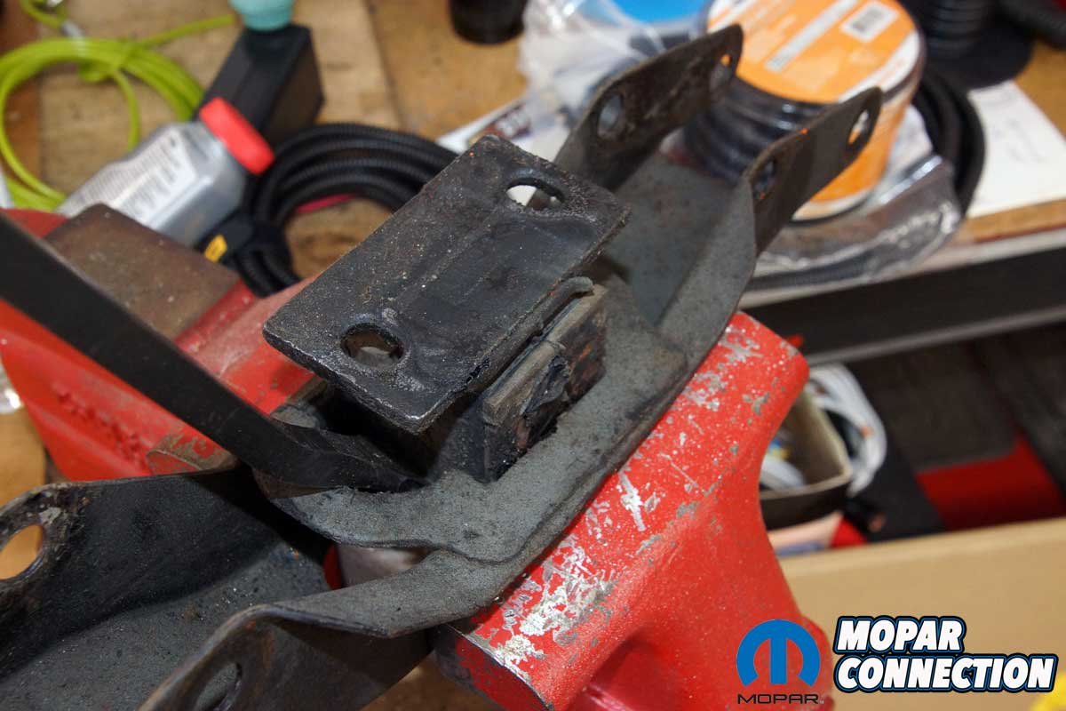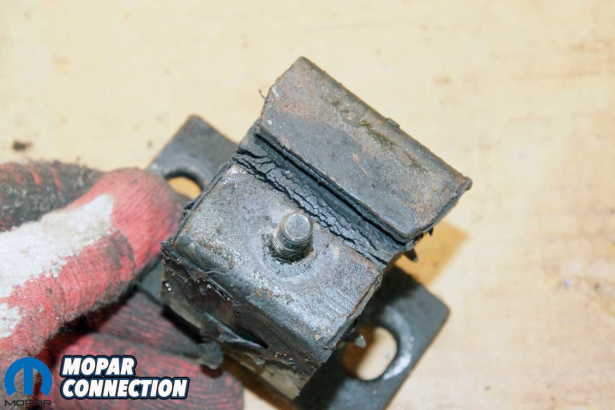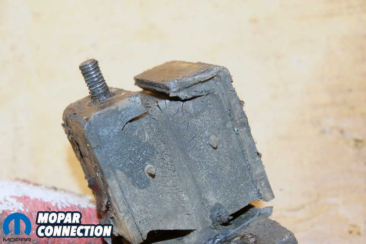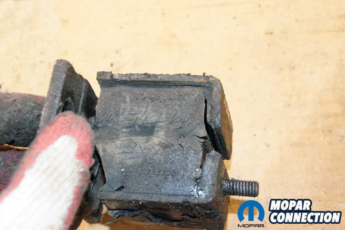 Above: The original mount had several minor torn and cracked areas and the compression concerns mentioned earlier. We doubt it is the original mount, but who knows? We did find a faint Mopar part number on it, but it did not show well in the photos.