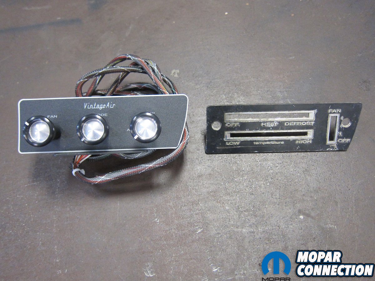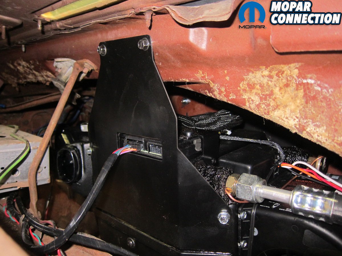 Next on the list was the new electronic control panel. Perfectly designed to fit in the factory dash exactly like the original, it was barely noticeable after installation. A socket head cap screw was included to mount it in the factory dash hole. One end of its pre-made wiring harness plugged in to the control panel while the other went back to the main control unit on the evaporator case. It can’t get much more sleek or simple than that.