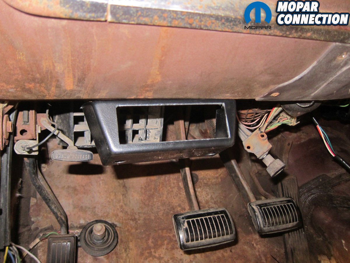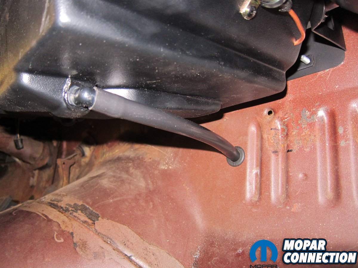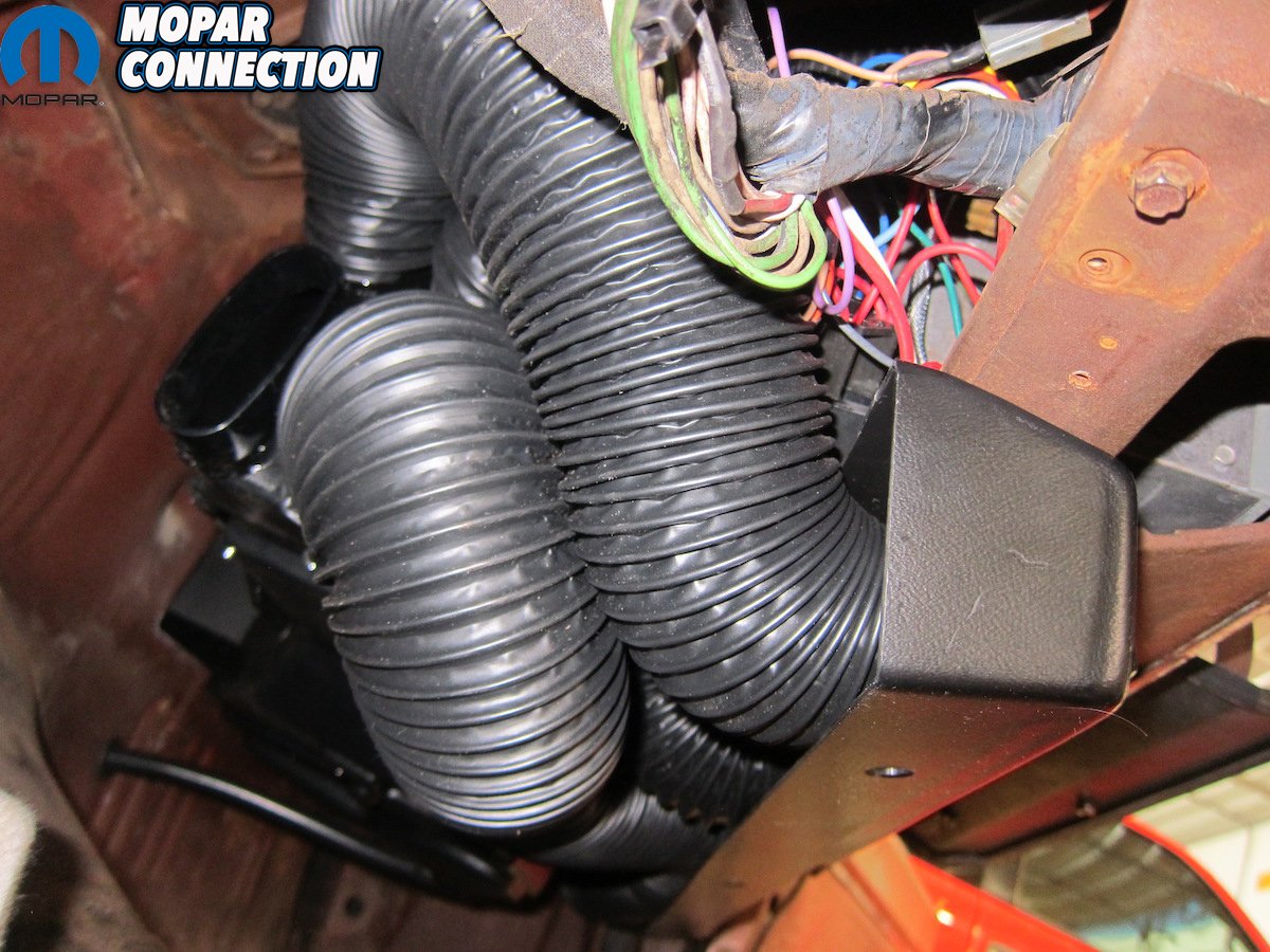 Finishing up the interior were vent assemblies and ductwork. The original driver’s side defrost vent was reused with the supplied adapter, while a new passenger’s side vent bolted to the original mounting points. Our Satellite wasn’t equipped with factory air-conditioning, but the included under-dash vent housings are sturdy, good looking, and simple to mount with a total of five screws. The vents themselves popped into place, then were connected via ductwork that was cut to length. Yes, even the ductwork was included. Actually, a few feet extra were included for any mishaps.