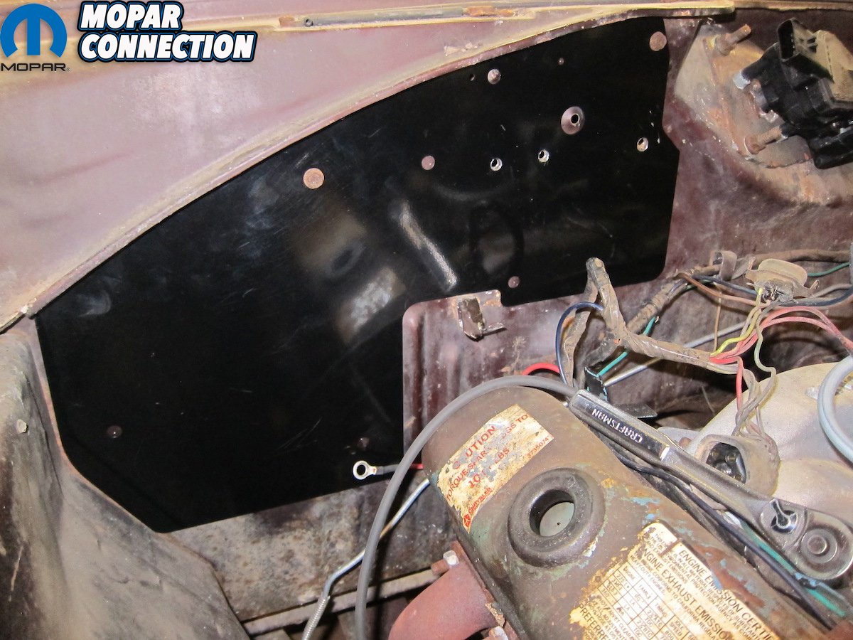 Above: Old components were temporarily removed to make way for the firewall reinforcement plate.