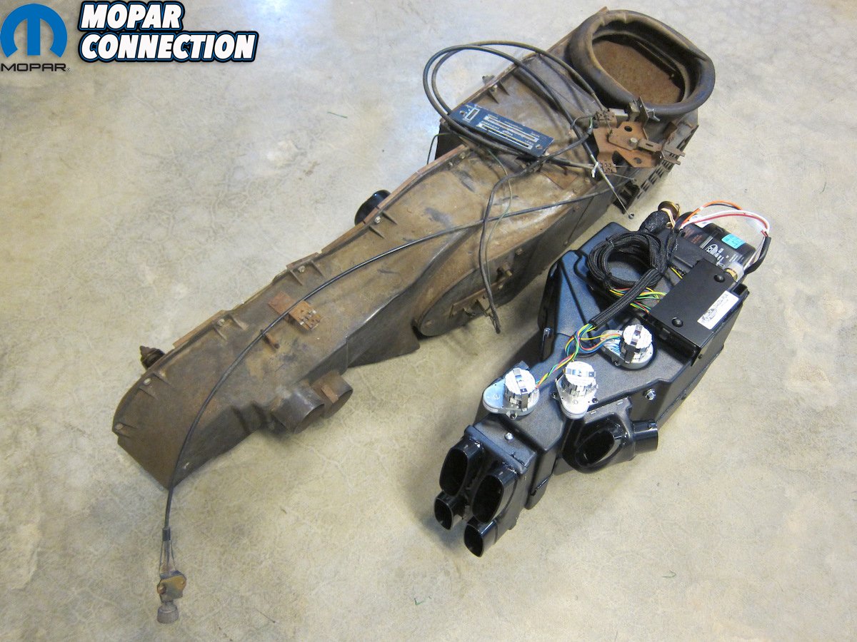The amount of technology packed in to this one-punch kit blew us away. Fly-by-wire electronic servo motor controls eliminate the need for old-fashioned cables and capillary tubes while allowing for infinite air blending and fan speed adjustment to zero in on just the right temperature. The compressor is more modern too with a lightweight Sanden unit upstaging Chrysler’s old standby, the RV-2. Box after box came packed with modern, high-tech components that got us giddy to jump right in.