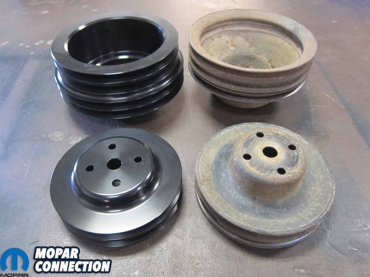 Next out of the box was a pair of new billet V-belt pulleys. Cut from solid chunks of aluminum, these pulleys are really trick stealth pieces to upgrade your pulley system while maintaining a factory look with their black Mil 3 spec hard-coating. We probably could have scrounged a set of swap-meet pulleys, but why do that when these are brand new, precision-machined, and designed to work with this exact air-conditioning system?