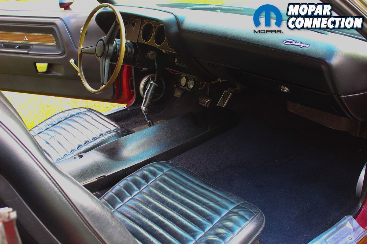 David bought the Challenger on the Facebook Marketplace in Tampa, Florida, for his wife, Stephanie, to drive around in. Up close, David said the Challenger’s previous restoration left behind areas of improvement, identifying overspray on top of the inside grille under the hood, and bubbles of rust painted over at the bottom left rear quarter panel. Nevertheless, he said there are plans for another restoration. The Challenger T/A is all matching numbers and sports factory Rallye wheels, coupled with E60-15 tires in the front and G60-15s in the rear. The T/A comes with a ducktail rear deck lid spoiler, along with heavy-duty underpinnings packed with a Sure-Grip differential, coated in FE5 Bright Red with an all matte-black hood and snorkel scoop.