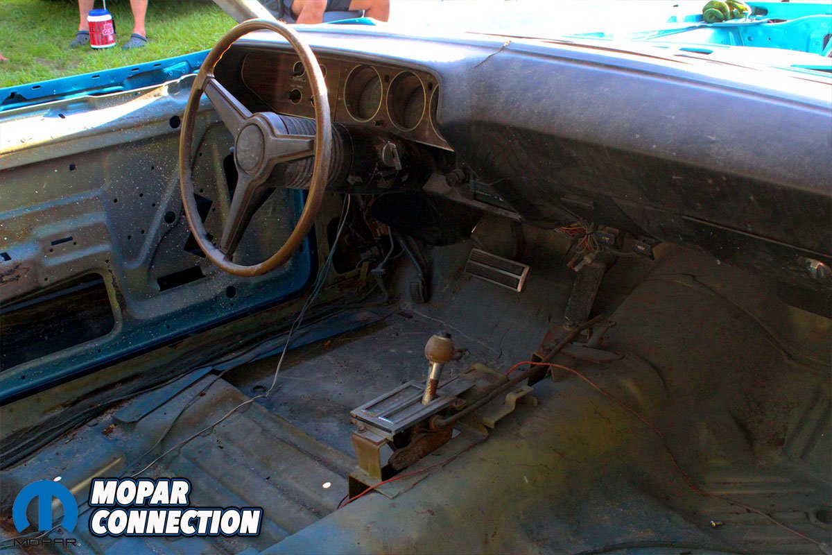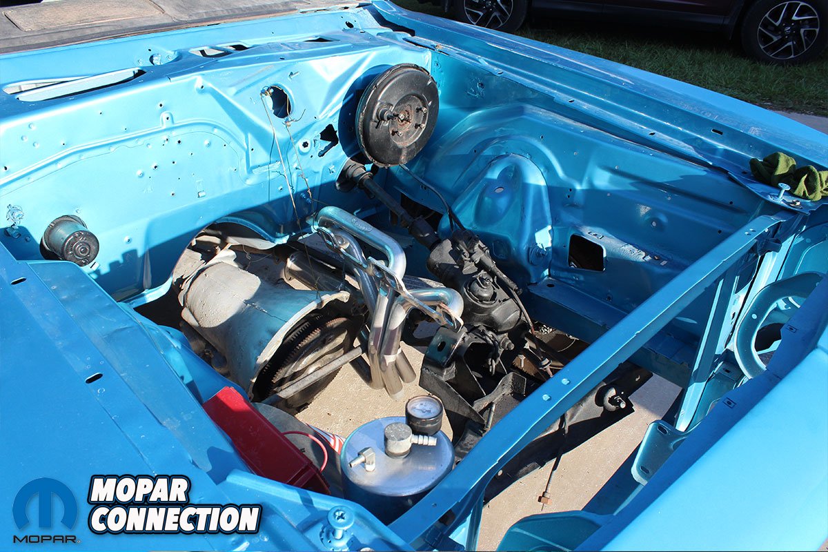 In 2008, the ‘Cuda was given a B5 Blue exterior paint treatment, a color he fancies. As the years passed, David and his father also temporarily removed the car’s original factory fiberglass hood to remove the 340 Six Barrel for a rebuild. While progress has been slow, David said the engine project has been making steady progress. The seats and glass are currently out of the car waiting to be re-installed, providing a spacious work environment to stretch the legs for the restorer at work. Looking inside, the original steering wheel and pedals are in good operation condition, leaving minor electrical work for the gauges to be functional.