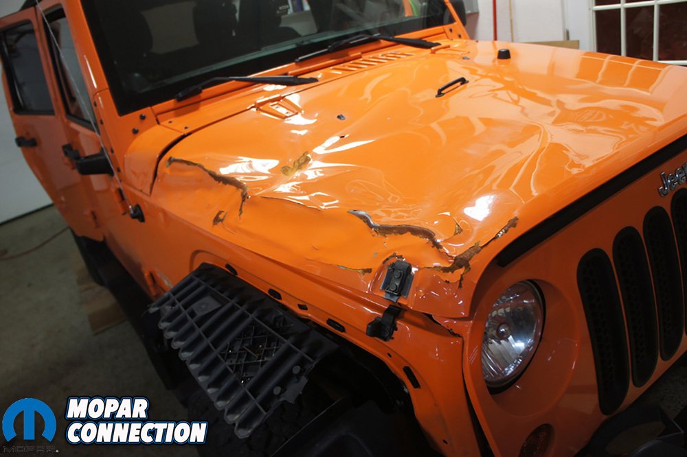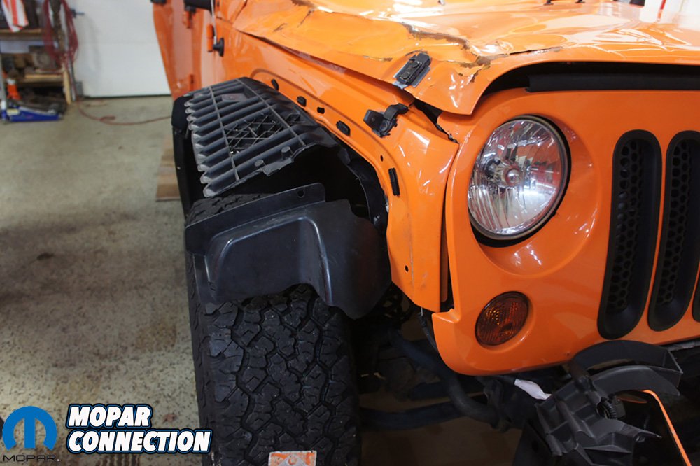 Once the Jeep was cleaned and swept out, it was better condition than we expected. The major damage that needed fixed to pass inspection would be the front passenger fender, hood, passenger rear door and passenger mirror. We also would need to find a front bumper. We immediately started searching the web and making calls to find the parts we needed. The JK/JKU platform was produced from 2007-2018 (early) and assumed there would be a plethora of used parts for them.