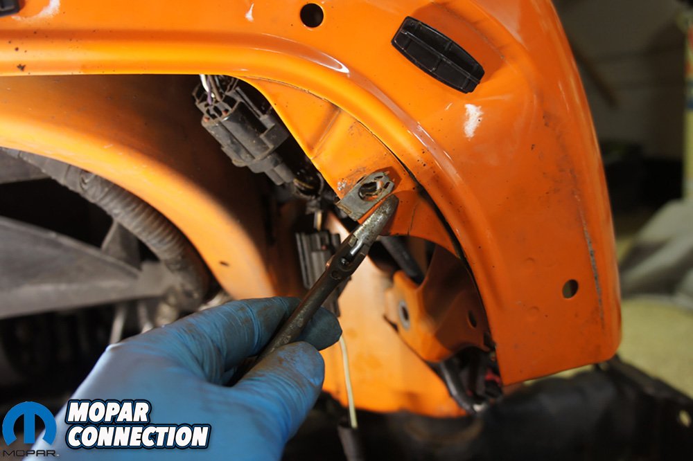 Above Left: We were able to bend most of the passenger fender back out. We did have another fender painted but decided to keep the original. Above Right: The grille fit a little funky around the passenger headlight and had to adjust the headlight and the fender to fit better.