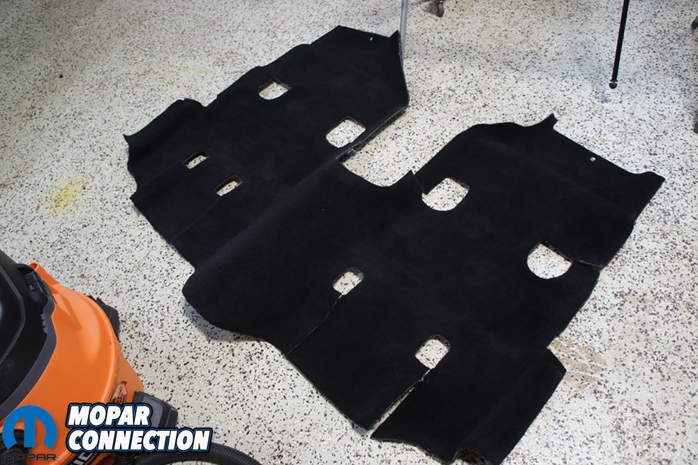 Above Left: With all the water laying in the Jeep we decided to pull out the interior. We also found a ton of glass from the hard top that was crunched and with interior out we could make sure we thoroughly clean everything. Above Left: We had a pile of carpet that needed to dry.