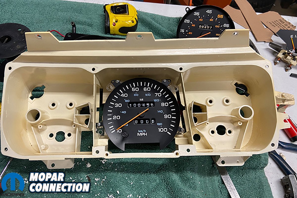 Wes eventually figured out that a speedometer out of a ’90s truck could be electronically grafted to the original cluster. This would be a lot bigger ontaking than Wes had planned.