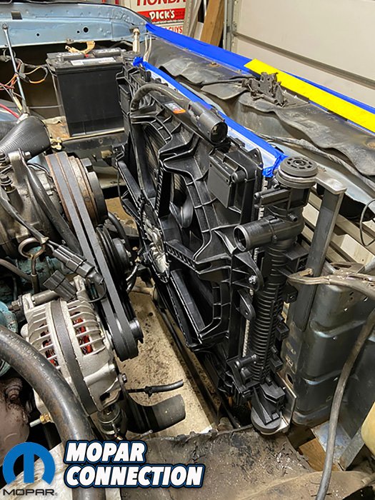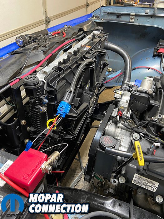Wes picked up a 2018 Camaro radiator and fan combo. Its sizing fit well and knew it would keep the Hemi nice and cool. After a little fabrication to mount the assembly, it was off to the fuel system.