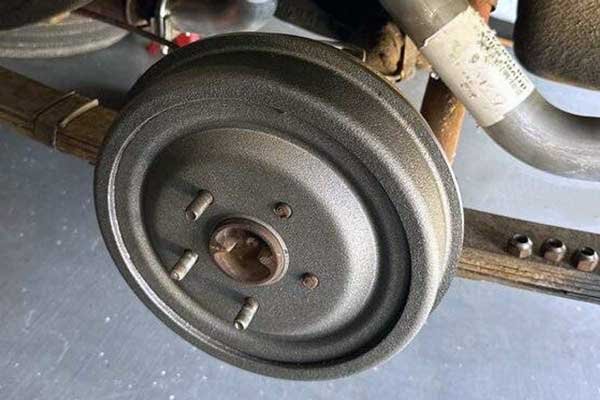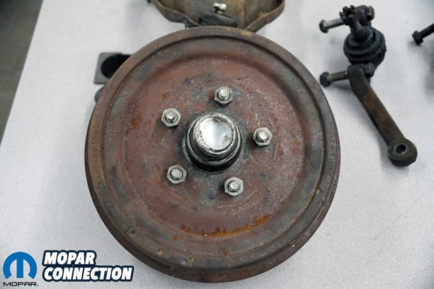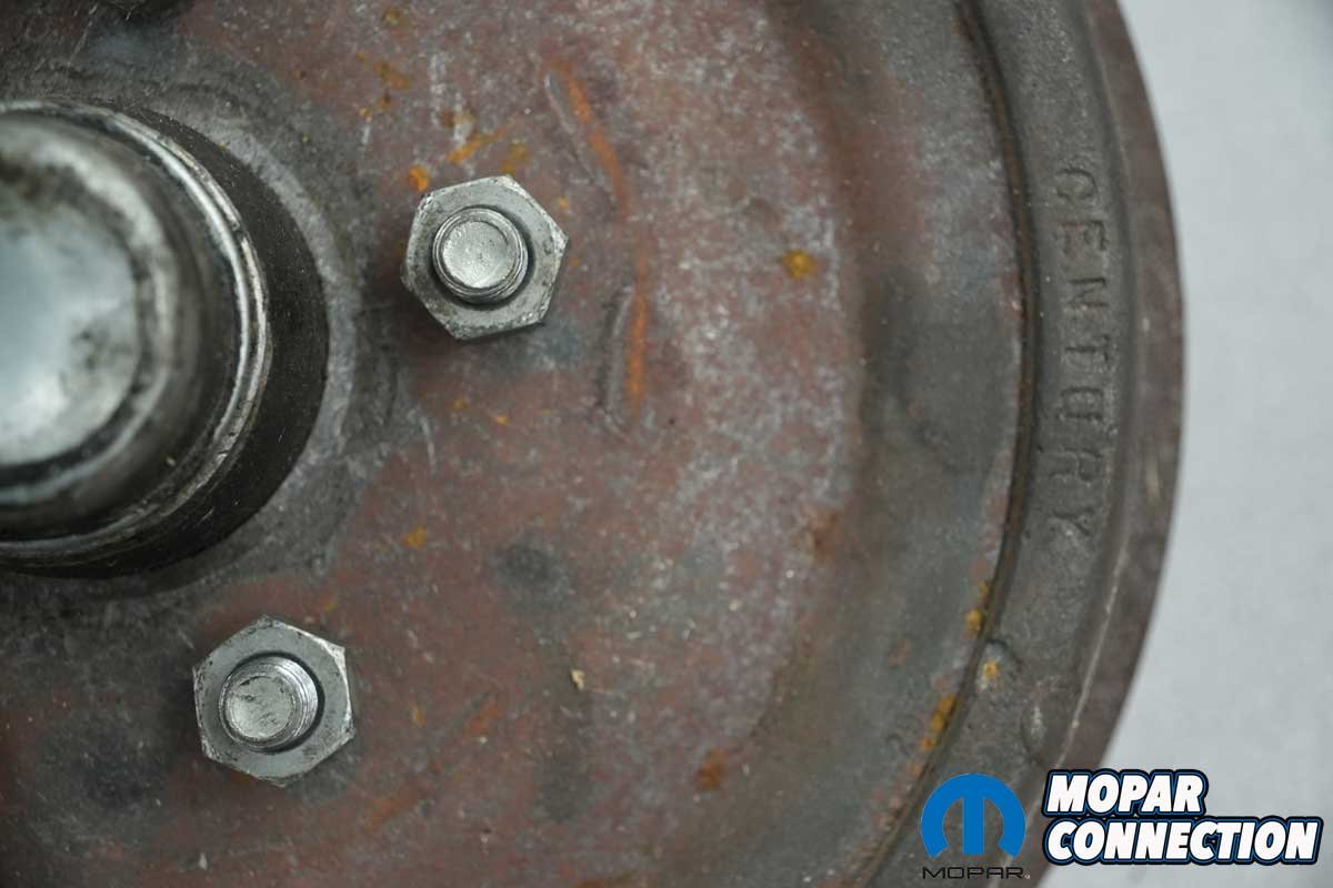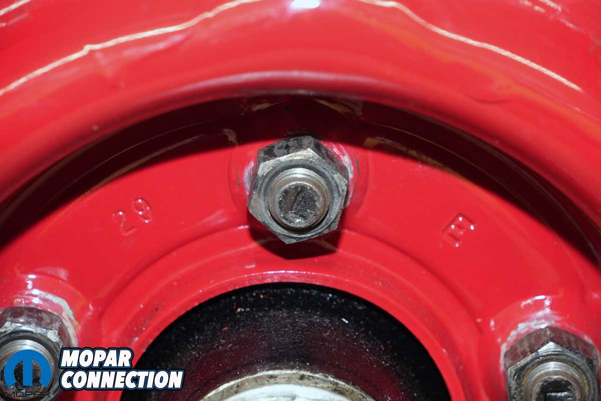 Above: The replacement front drums for our ’67 Dart came with the traditional right-hand threads as noted by the lack of the “L” on the end of the studs. If we had desired the reverse threads, we would have had to press out the right-hand threaded studs and install the left-hand studs. However, like most enthusiasts, it was more convenient to keep the right-hand threads and convert the left rear over as well.