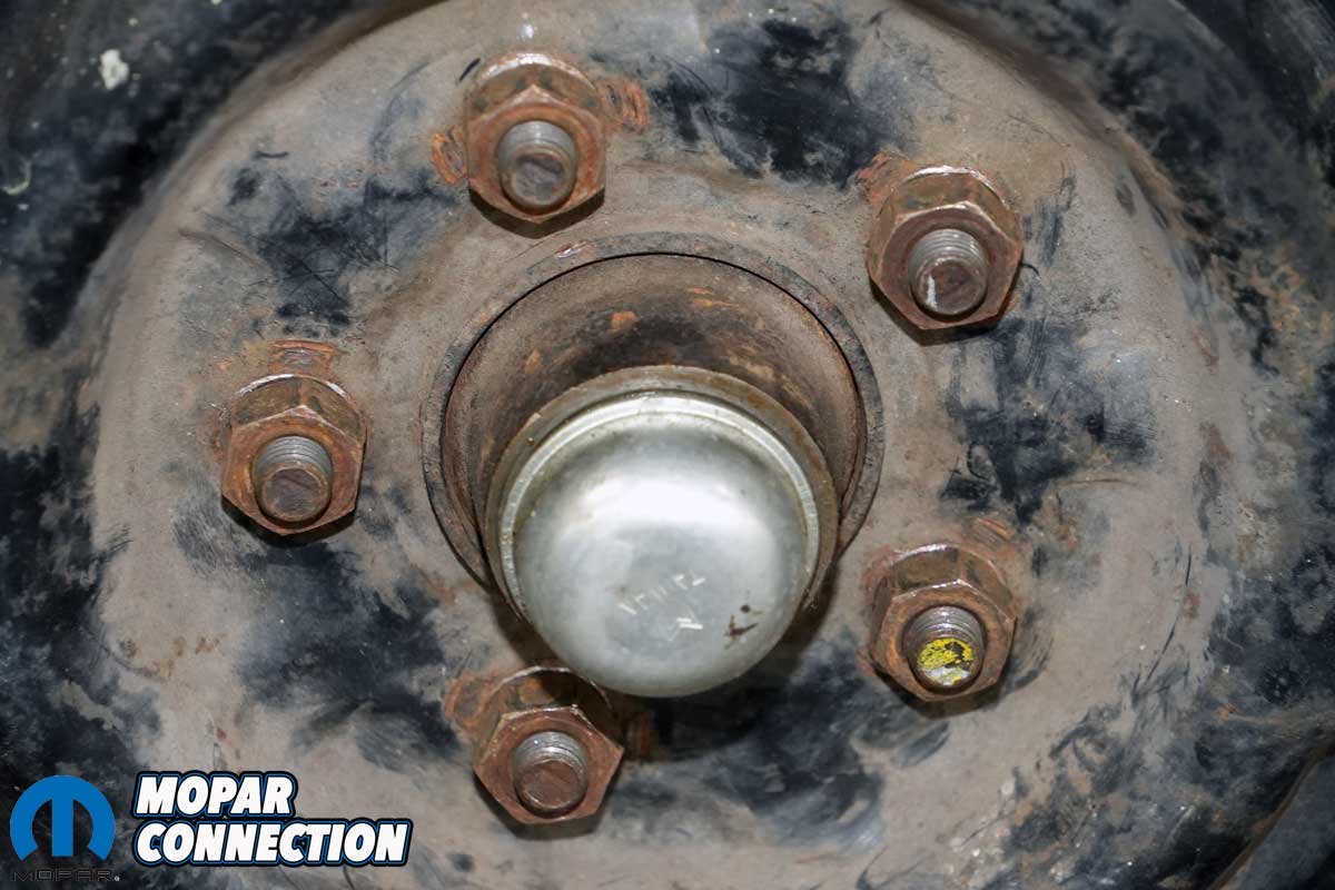 Above Left: The left-hand threads were marked with an “L” stamping on the end of the stud. On the B-, C-, and E-bodies, the studs were 1/2-20, and the bolt pattern was 5×4.5 inches. Above Right: The smaller A-bodies had 7/16-20 studs with a 5×4-inch bolt pattern.