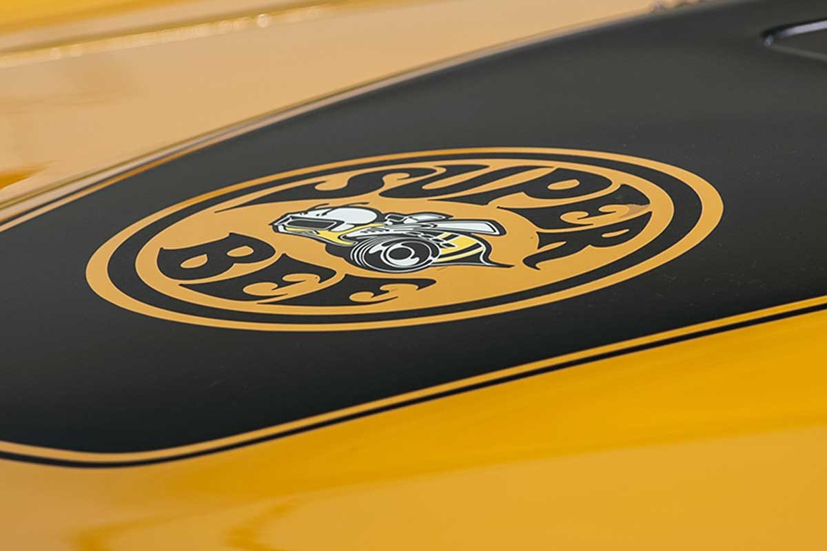 The Super Bee was built at the Lynch Road Assembly Plant on June 10, 1971, and shipped to a California dealer. Additional options on the Super Bee include a 59-amp battery, dual exhaust, Rallye gauges, tachometer, Go-Wing rear spoiler, blackout hood treatment, Rallye suspension, a noise reduction package, and the ultra-rate EL5 High Impact Butterscotch paint.