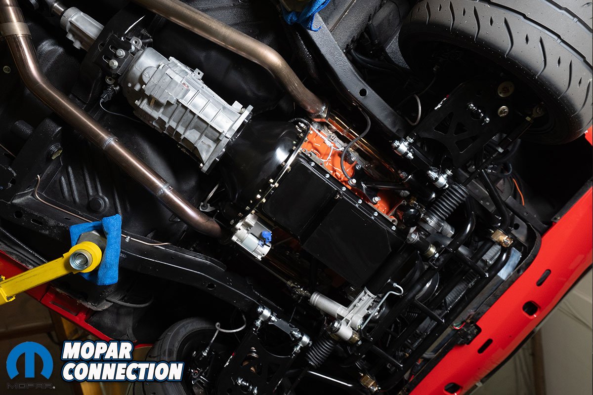 Backing the G3 Hemi is a Tremec TKX 5-speed manual transmission set-up from our good friends at Silver Sport Transmissions. Shifting is a breeze thanks to the McLeod clutch and hydraulic throwout bearing installed with the Tremec. The modern Hemi and Tremec transmission are guaranteed to put a smile on the driver’s face! Out back sits a factory 8 ¾ rear differential that has been totally rebuilt.
