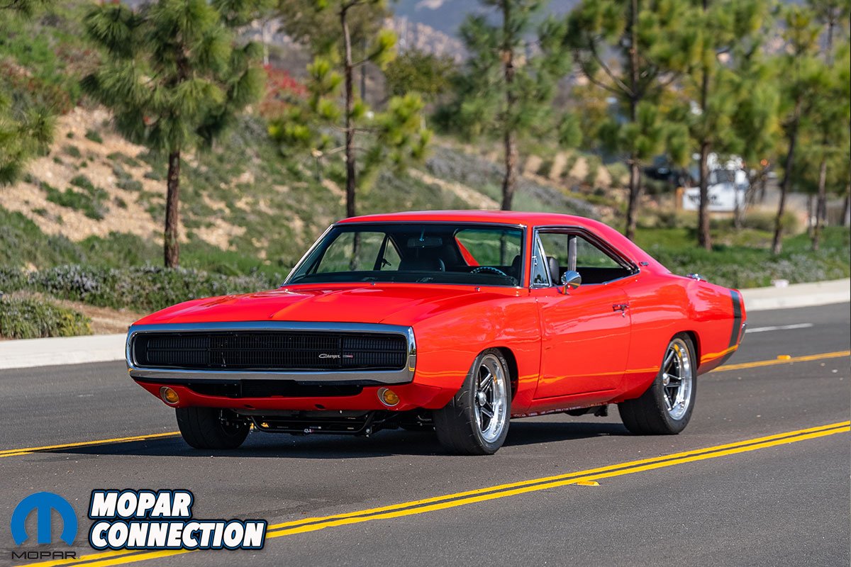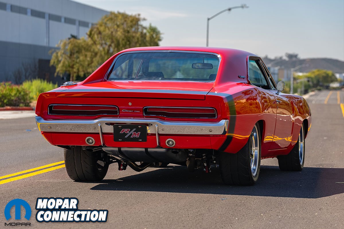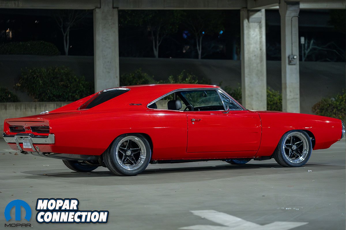 The Charger rides on American Racing “Groove” wheels (18×8 front and 18×10 rear) wrapped in Falken RT660 tires (245/40/18 front and 295/40/18 rear) to complete the modern suspension.