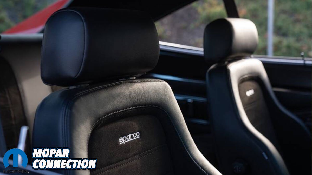 To go along with the resto-mod style of the build, the interior is a perfect blend of modern and classic. The original front seats were replaced with Sparco GT leather and suede bucket seats that hold you in place when you throw the car around corners. The original back seat was reupholstered to match the fronts and a TMI leather center console with a wireless phone charging pad was installed.