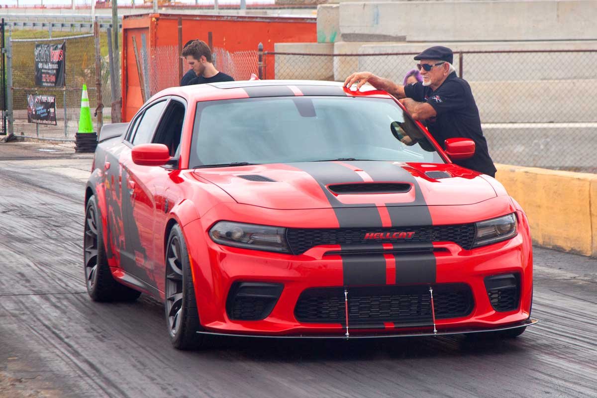 Left: Big Daddy put the Charger through its paces at the strip. The Charger quickly clicked off quarter-mile runs in the 10.60s. Right: The Charger and the Durango have plenty of performance, but unlike the hi-po cars of the 60s and 70s, the Hellcats have comfortable interiors, air conditioning, heat, and ride great.