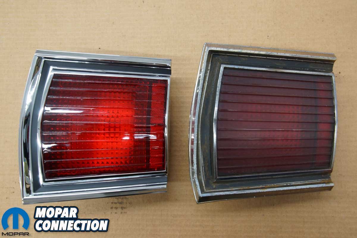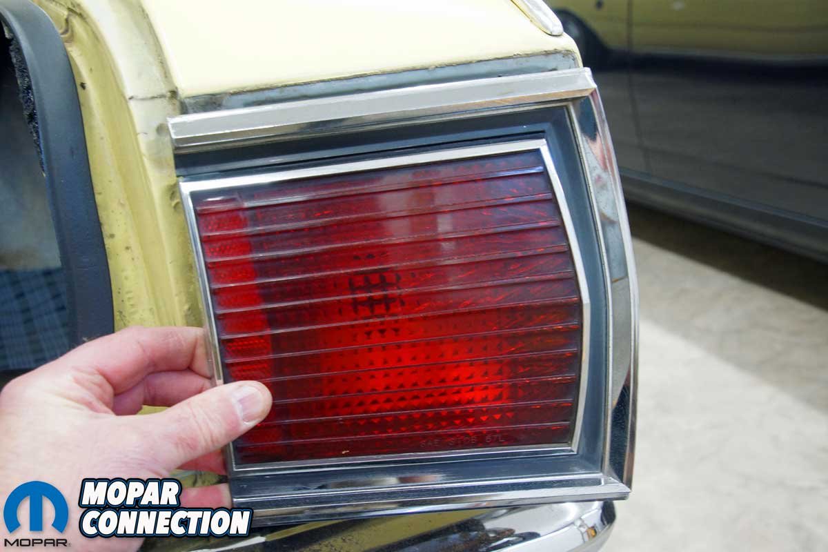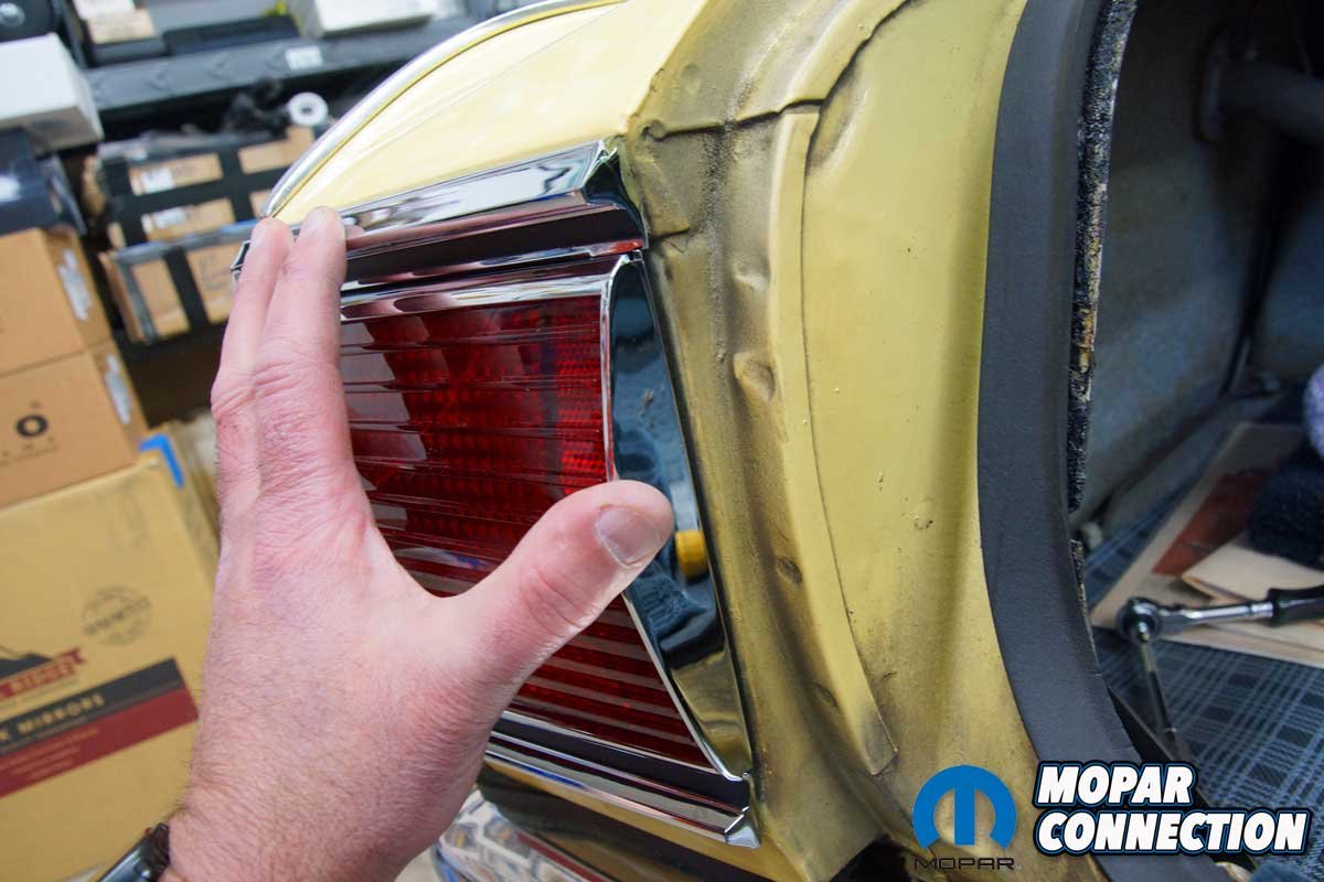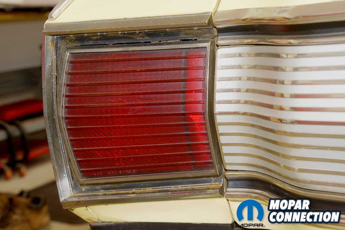 We were pleased with the update, but then, the domino effect showed up to bite us. Next to the pretty tail panel bezel, the well-aged 55-year-old taillight chrome looked terrible. Luckily, Year One has complete taillight assemblies (part no. TLA67LH and TLA67RH) for our Dart.