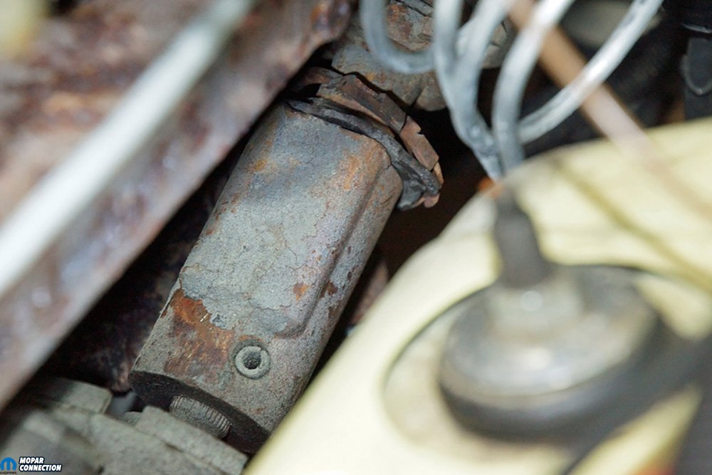 The latest inferior-quality repair we have come across is the steering column. We noticed a missing breakaway bracket bolt, and due to this, the steering column vibrates (shakes) when the Dart traverses a bump in the road. Accompanying column concerns include blinker lights that operate erratically, and the steering coupler and cover have long since separated, which contaminated the grease in the coupler.