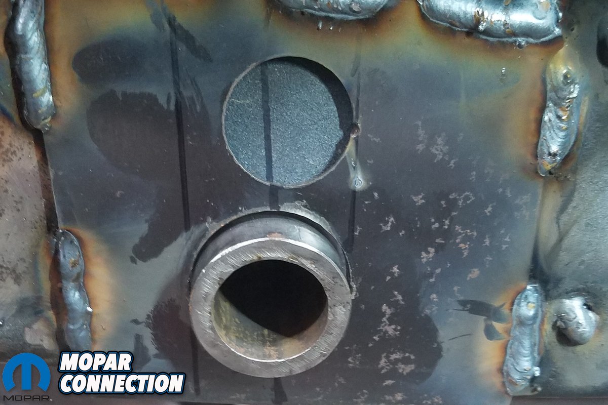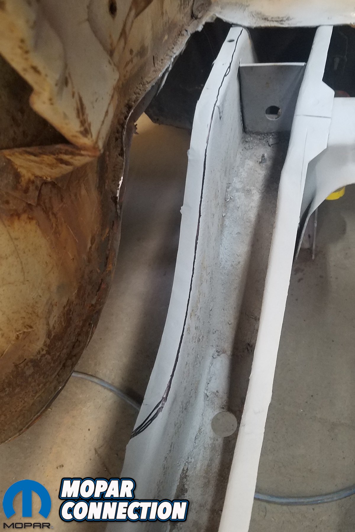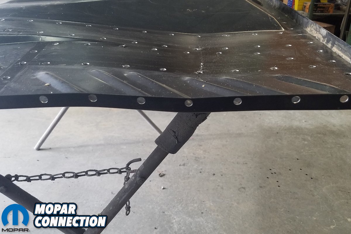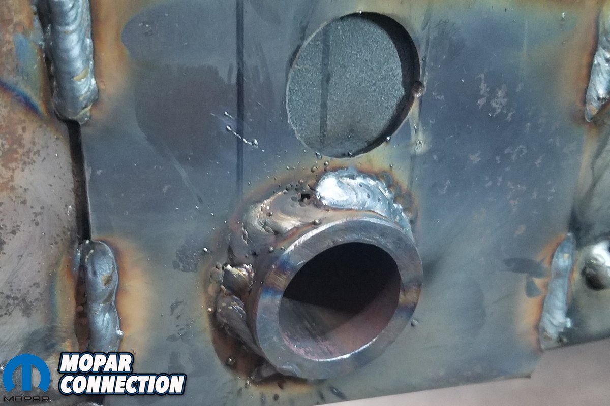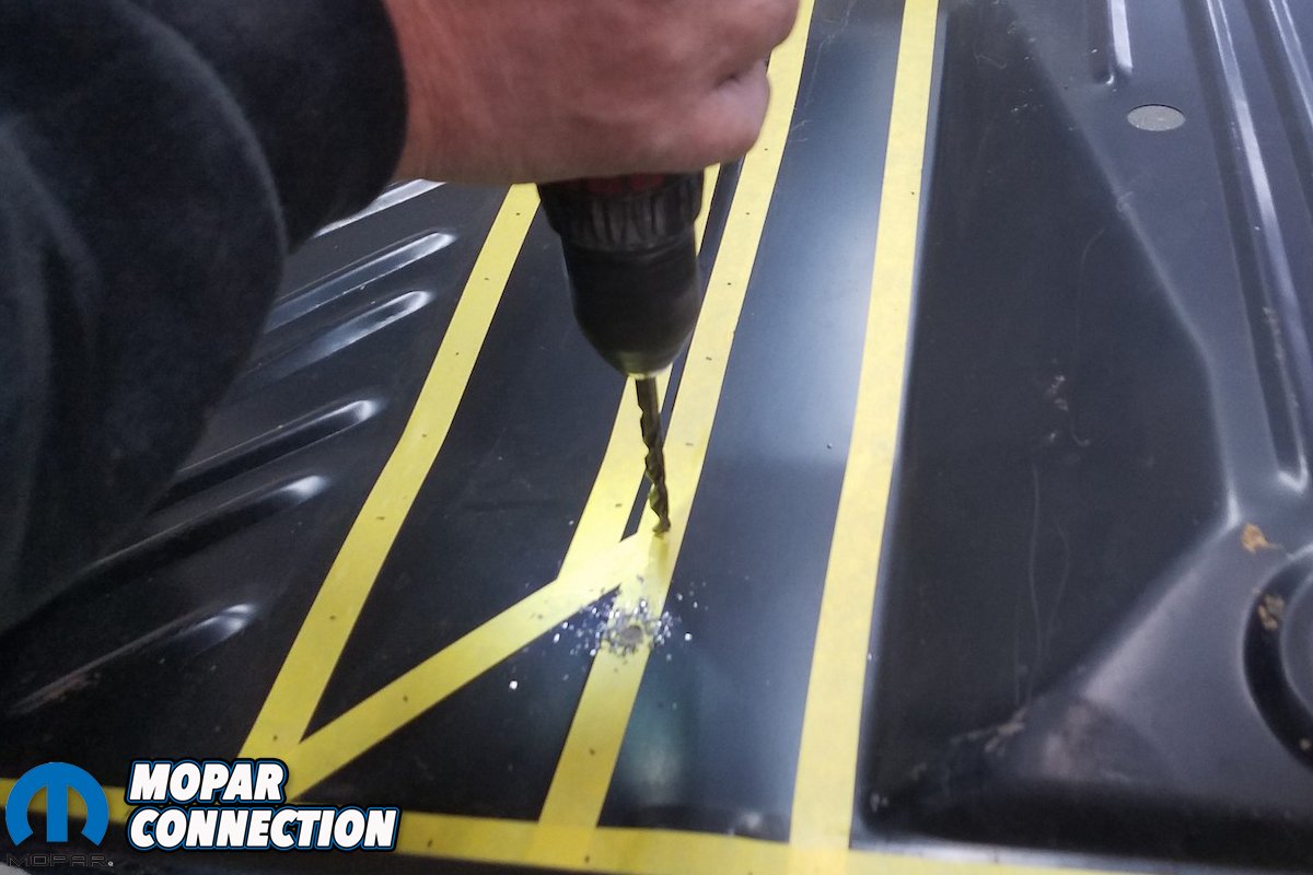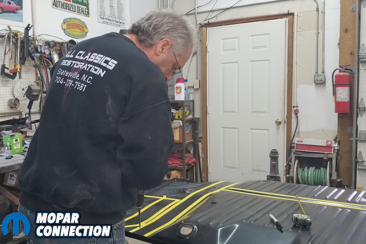 Since we’re doing so without the heavy industrial spot welders used by the factory or restoration outfits like the AMD Installation Center, our process was drilling out and fill-welding each replacement spotweld, and equally tedious task. Yet, when complete, the replaced trunk pan, side skirt/trunk extensions and rear cross member will look impressively close to factory-correct without having the benefit of half of the tools used by Chrysler.