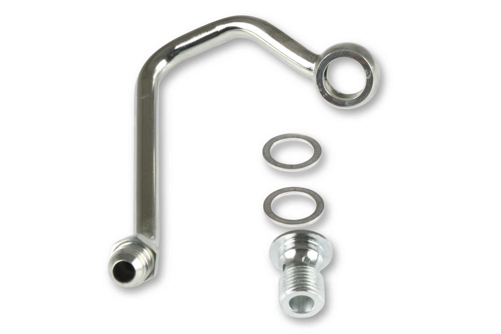The Holley Low Pressure Power Steering Kit includes a low pressure Saginaw type II pump with reservoir, billet mount, 6-rib pulley, and a special hardline to move the -6 AN hose fitting to a more accessible location. All you need to do is choose your power steering hose and fittings to plumb the pump to your specific power steering box.
