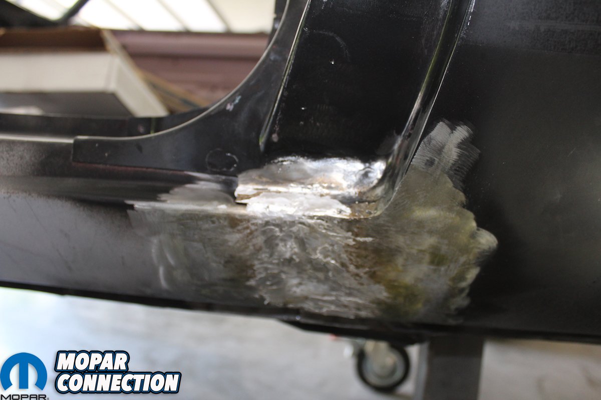 The first thing that jumped out after getting the car back from Classic Muscle Metal and the AMD Installation Center was all the factory spot welds and the 4 major seams that must be filled. Below both doors are the seams where the rocker panel, floorboards, and quarter panels meet. The other two seams are where the Dutchman panel and the rear quarters meet. The fastest way to seal these would be with fiberglass re-enforced filler. But that is not the way the factory did it. They used lead to make sure these seams lasted.