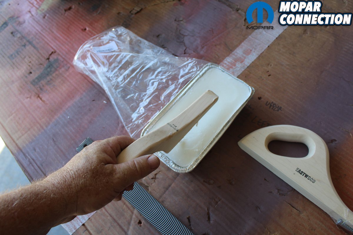 Above: The basic lead kit from Eastwood comes with everything you need to get started. It includes the tools, supplies, and a professionally produced, “How To” video. The lead sticks, tinning butter, paddles, file, tallow, are all needed to apply the lead. If you do more than one car additional lead sticks are available from Eastwood’s site.