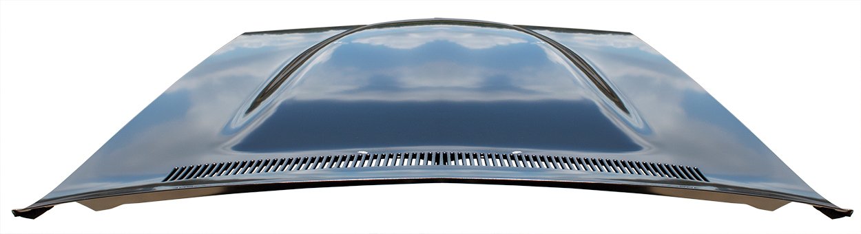 This hood is the 1971 version with the single long cowl vent screen however it will fit all 1971-1974 Chargers. Made on their exclusive new tools, each hood is stamped from high quality OE gauge steel and features a fully finished factory style underside and bracing. Installation is quick and easy as all AMD hoods are designed to bolt on using OE hood hinges and latch. Priced at $899.99 USD, it’s cheaper than most original hoods available if originality isn’t a big deal.