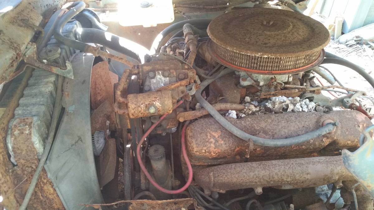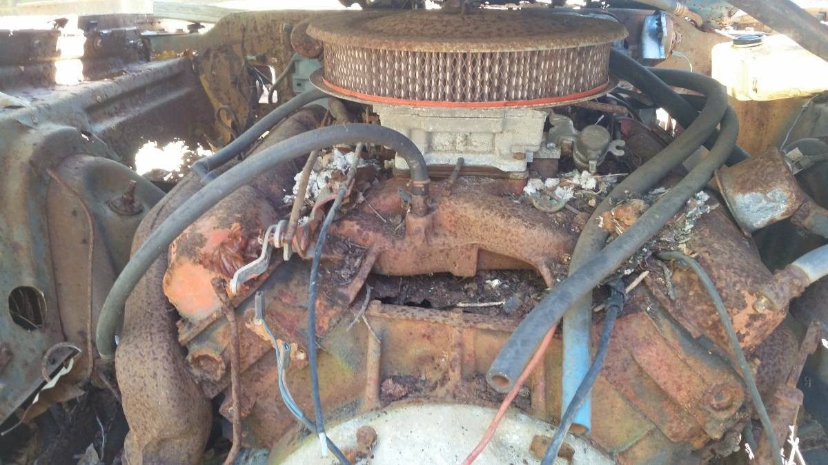 “This is a real R/T U-code car. The car was one of the worst rusted cars I have ever seen, when we pulled it out from behind the building, it came out in chunks and pieces, what I’m selling here is the 440 auto, complete from front bumper to the doors, there’s no cowl, however, it does have the k-member, power drum brakes, exhaust manifolds, bad bumper, possibly usable parts from grille and hide away headlights; hood and fenders are toast, I drove the car there over 20 years ago.”