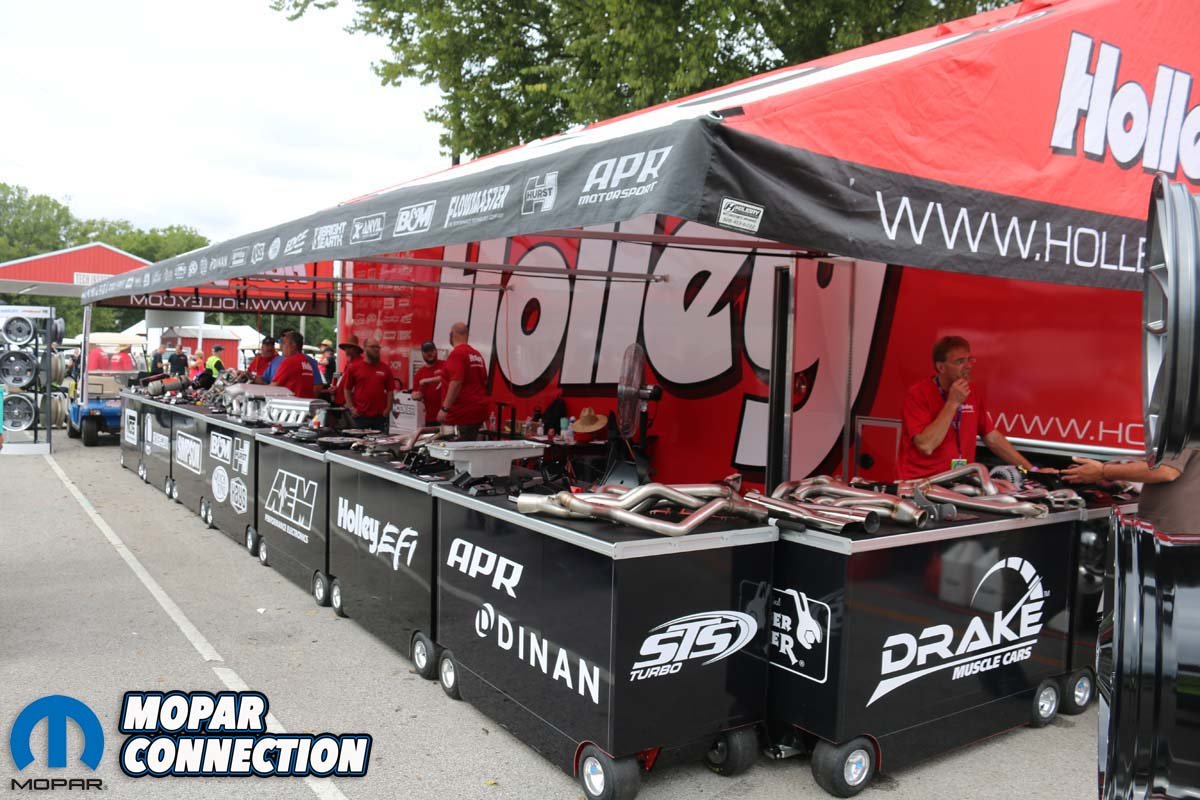 Manufacturers big and small littered the midway with special event deals and, of course, the added benefit of having products on-hand to save attendees the expense of shipping any large or heavy items. As expected, Holley’s trailer was loaded to the gills with just about everything you’d need for Hemi-stuffing shenanigans.