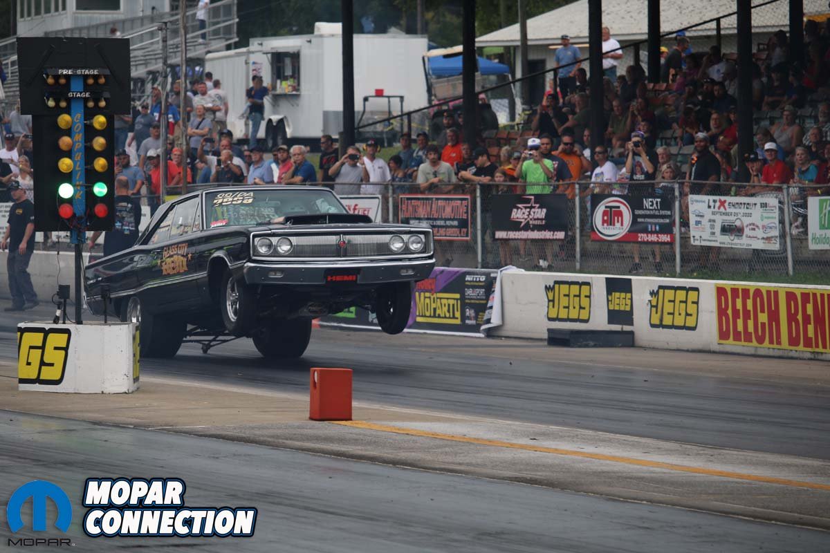Competition was fierce as both a Hulk-style T-shirt removal and a shotgunned can of cold beverage were part of the contestants’ pleas for glory. Win or lose, every one of the Kentucky waterfalls went home proud. A wing car parade kept the crowd on its feet as the white and Petty-blue Superbirds made hot laps around the track. A bit of 440 flogging ensued, but nothing like the orange B-body that was being prepped to fly through the sky.