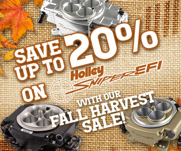 Per Holley last two newsletters, “Our Fall Harvest sale continues with BIG savings on Sniper EFI! For a limited time only, get up to 20% OFF SRP on Sniper EFI parts. Don’t wait – these deals won’t last!” and “Get up to 20% OFF SRP on Flowmaster performance upgrades for a limited time during our Fall Harvest Sale! Don’t miss out on these Flowmaster deals, start your upgrade today!”