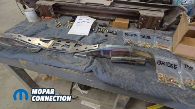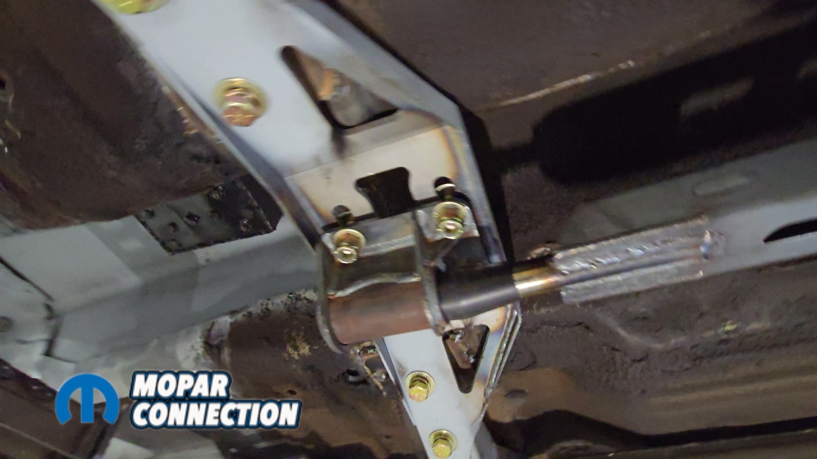 The slotted crossmember allows the assembly to be shortened for installation and then expanded outward until it wedges tightly against the rocker structure. Once seated properly, the bridge bolts are tightened to hold everything in place.