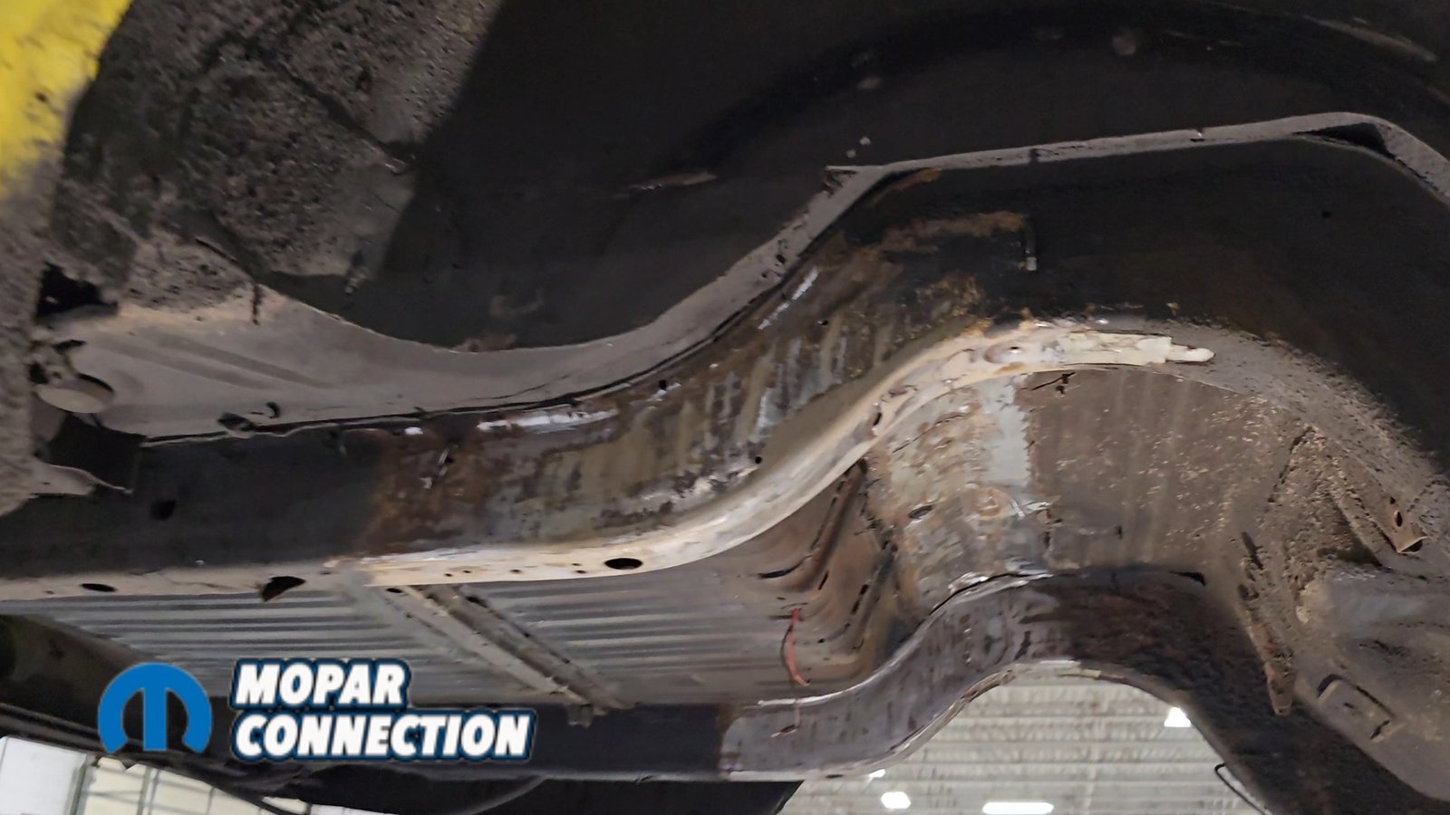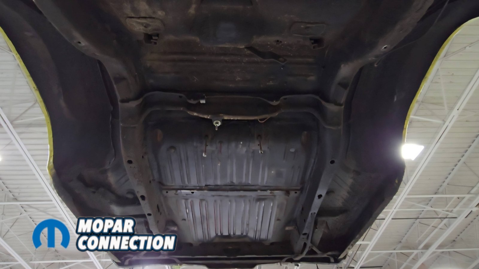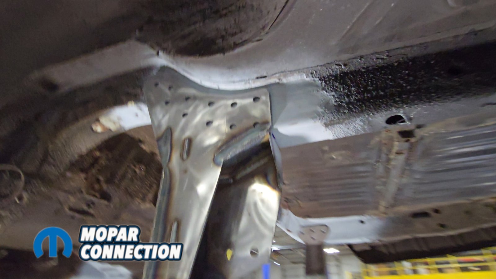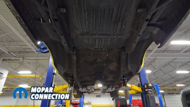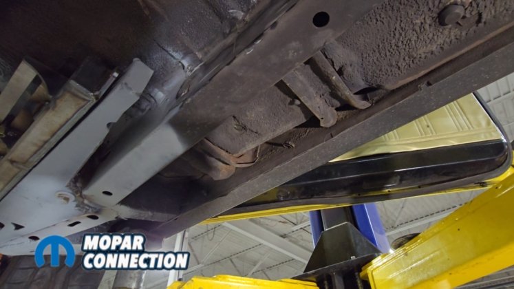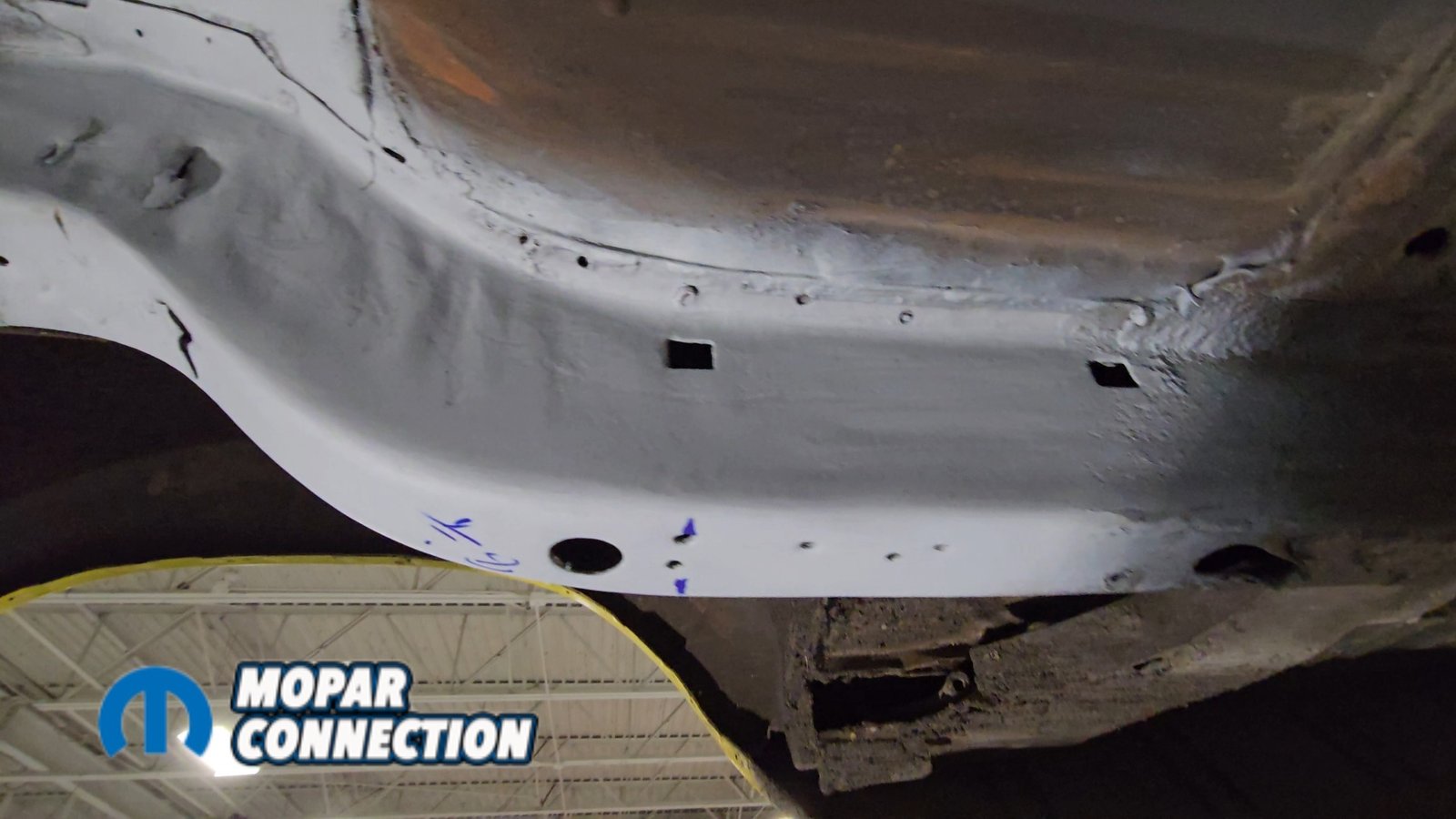 Above: With everything stripped from underneath, we cleaned off the factory undercoating and removed the original shock mounts to make room for the new setup.
