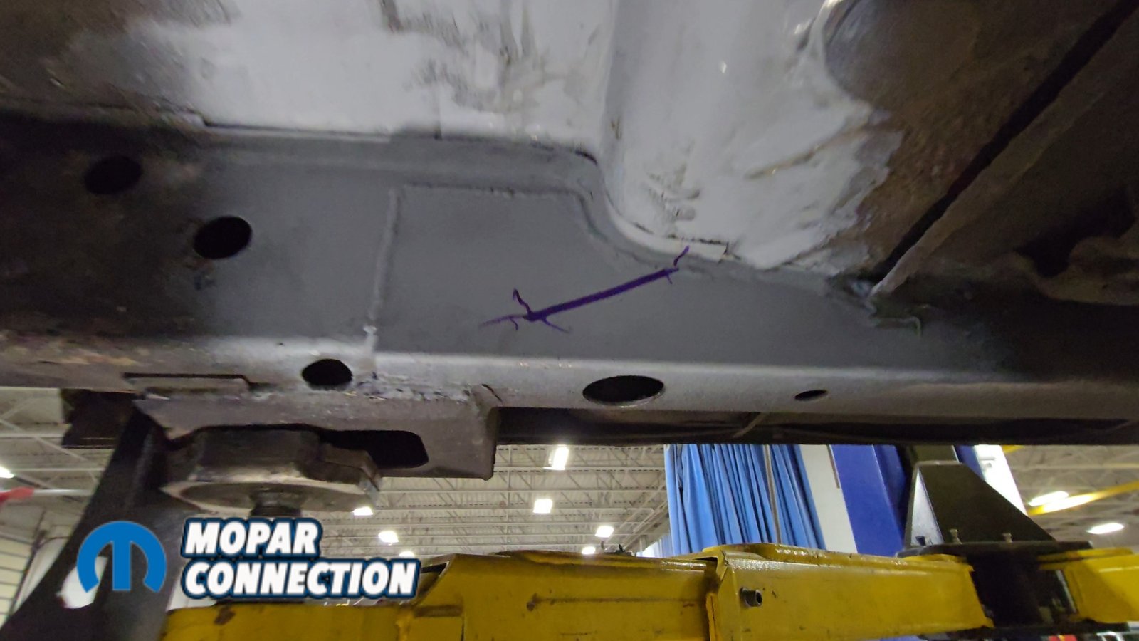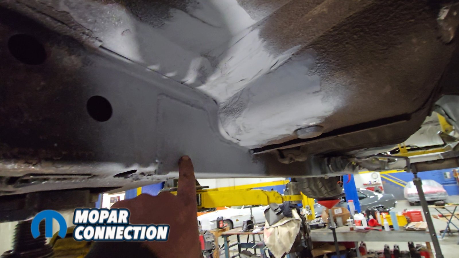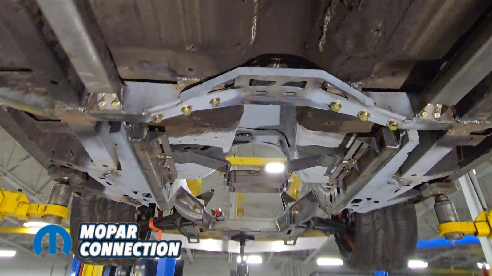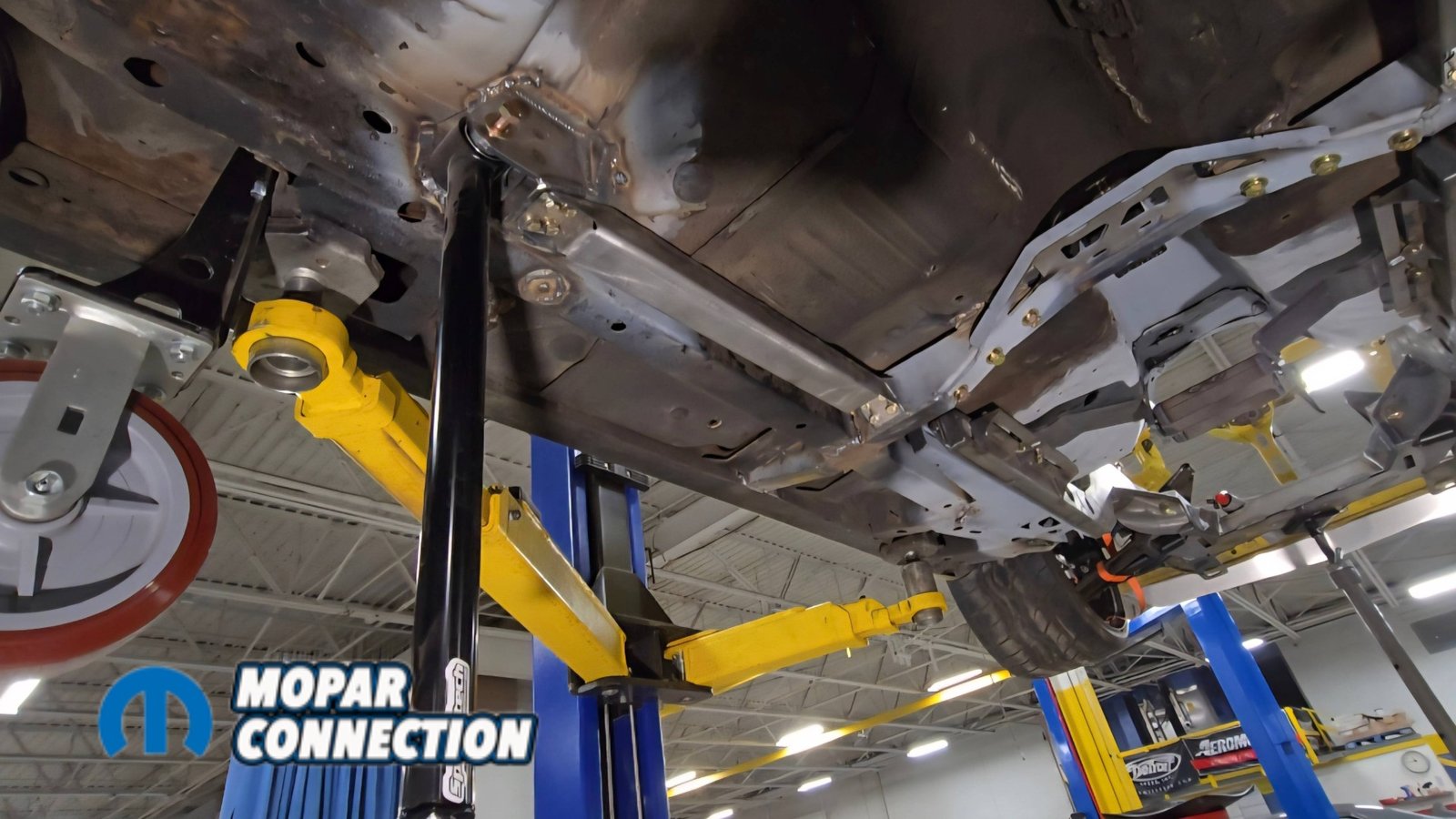 Above: With everything stripped from underneath, we cleaned off the factory undercoating and removed the original shock mounts to make room for the new setup.
