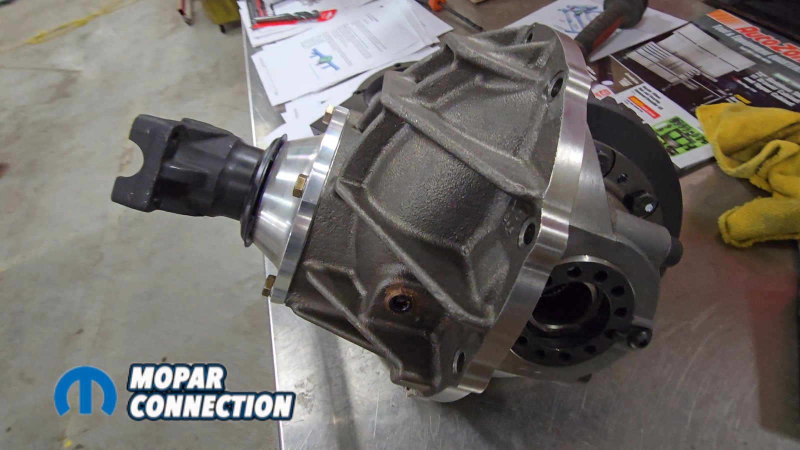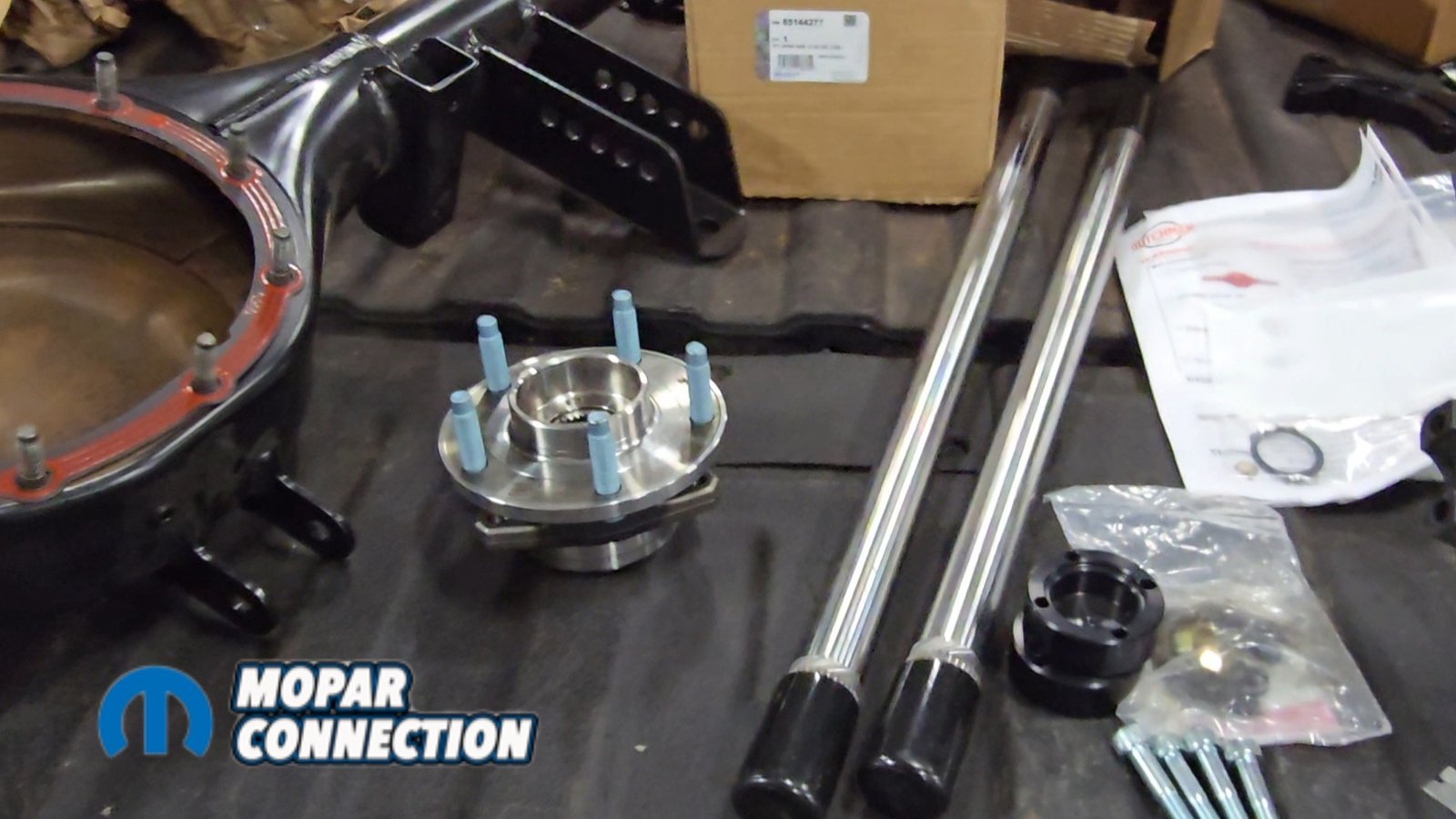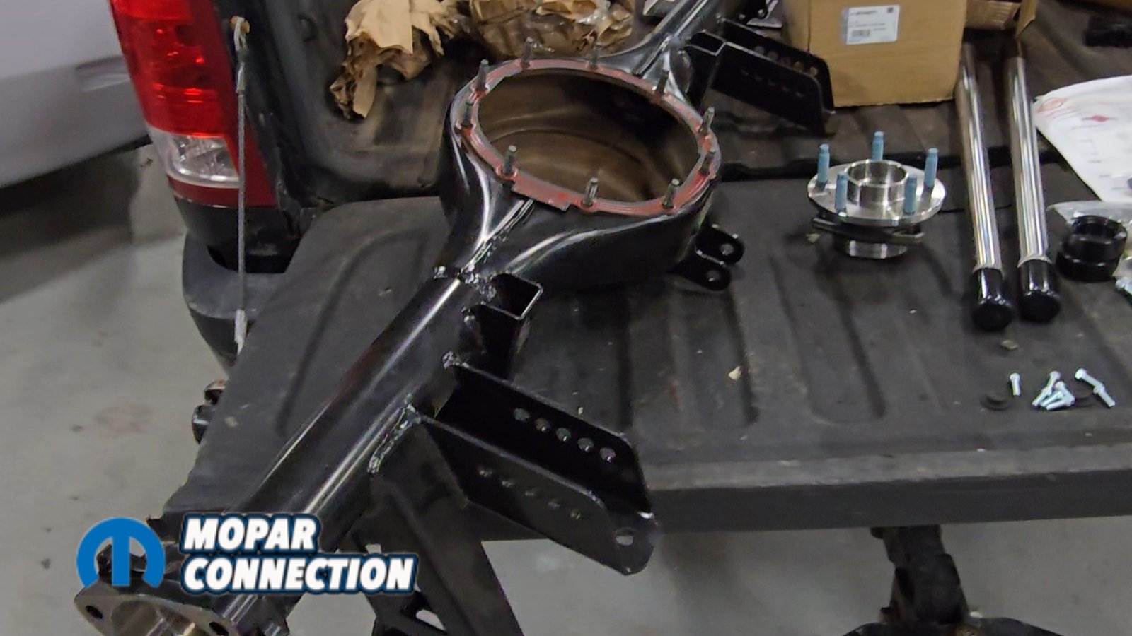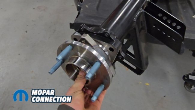 Before installing the torque arm, we needed to mock up the new axle supplied by Speedtech. When ordering the system, the new axle housing comes with the specific mounting points required for the torque arm. The housing arrives with all brackets already welded in place for the trailing arms and Panhard bar. The ends of the housing are also modified to accept Corvette hub bearings.