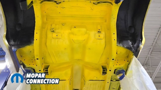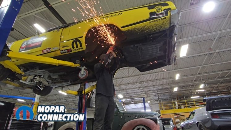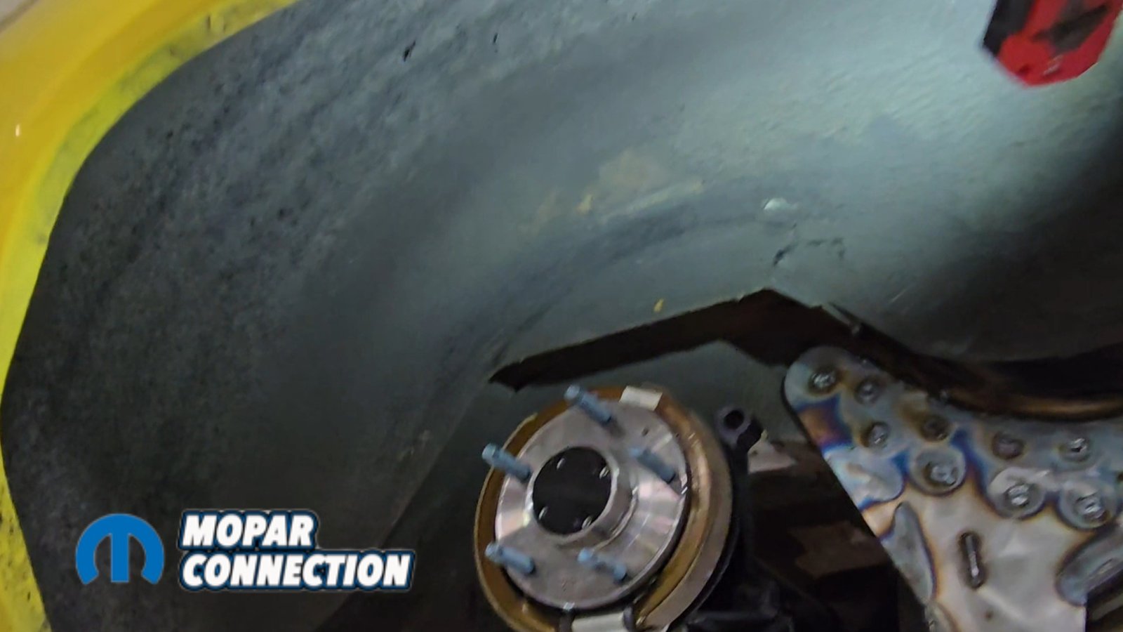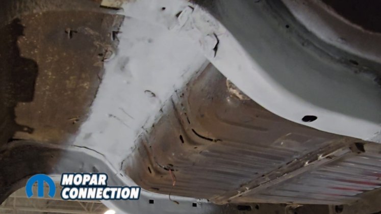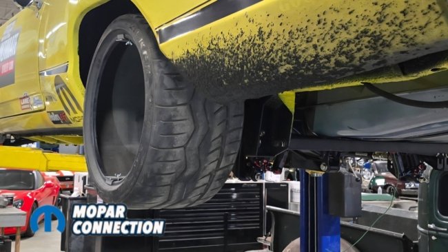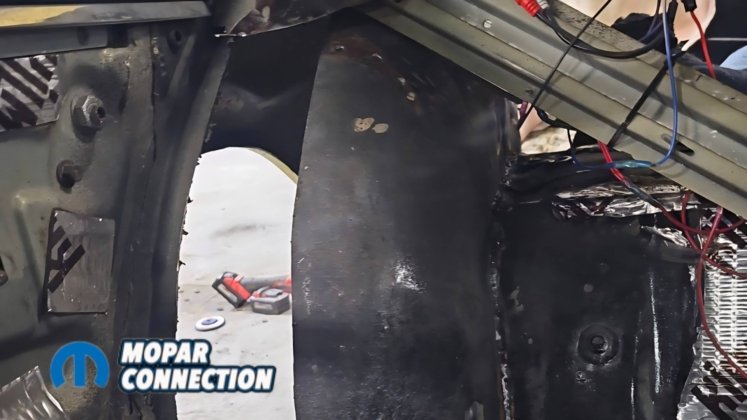 Before painting the underside of the car, we installed the USCT Motorsports (US Car Tool) mini-tub kit along with the outer wheel well modifications. This upgrade is essential if you want to fit the maximum tire size. On many Dodge B-body cars, a lip on the outer wheel tub reduces tire clearance by nearly two inches.